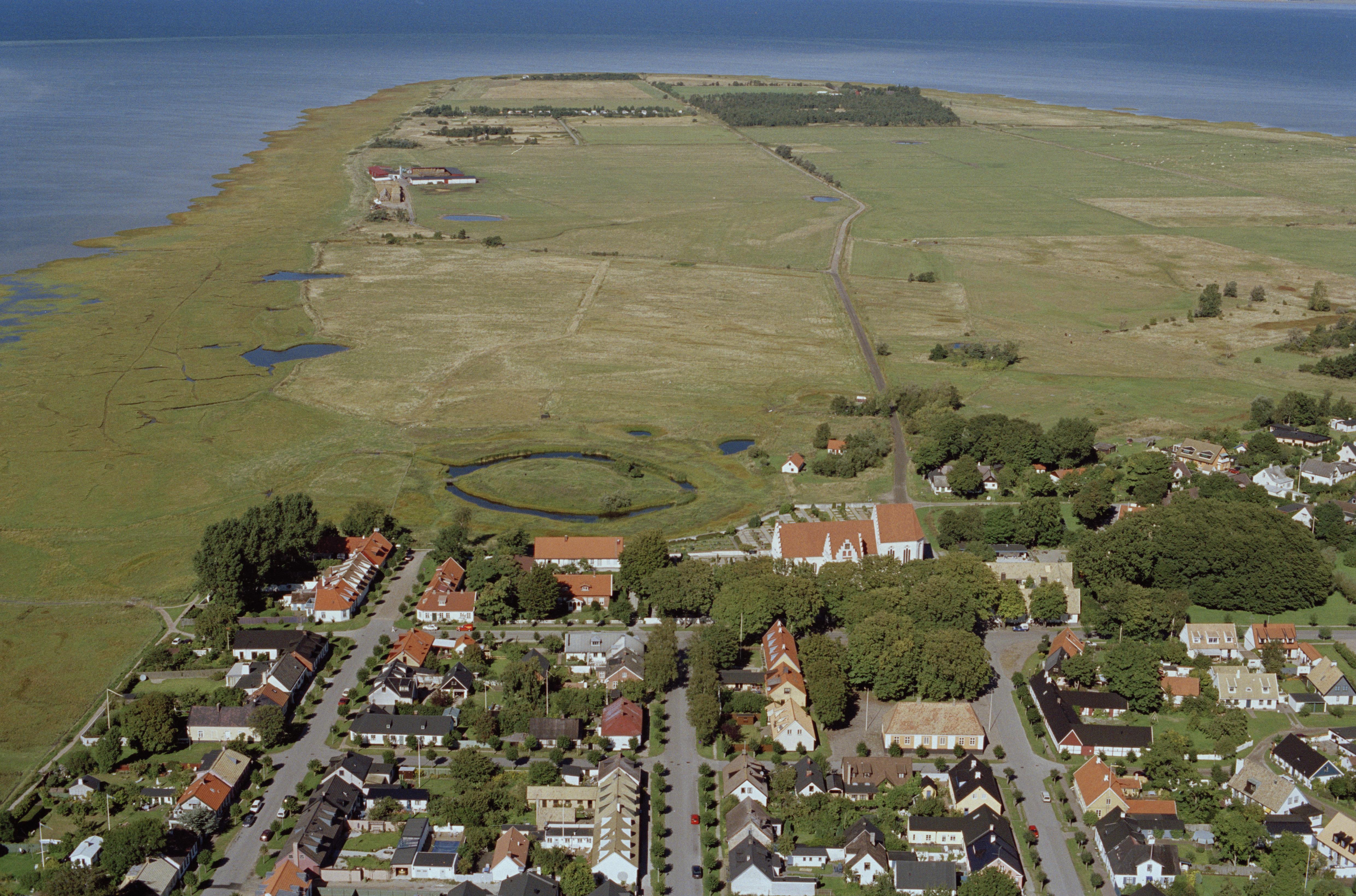 Beskrivning: Skanörs kyrka och Skanörs borgruin RAÄnr Skanör m. Falsterbo 1:1. Bilden är tagen mot (väderstreck): N
