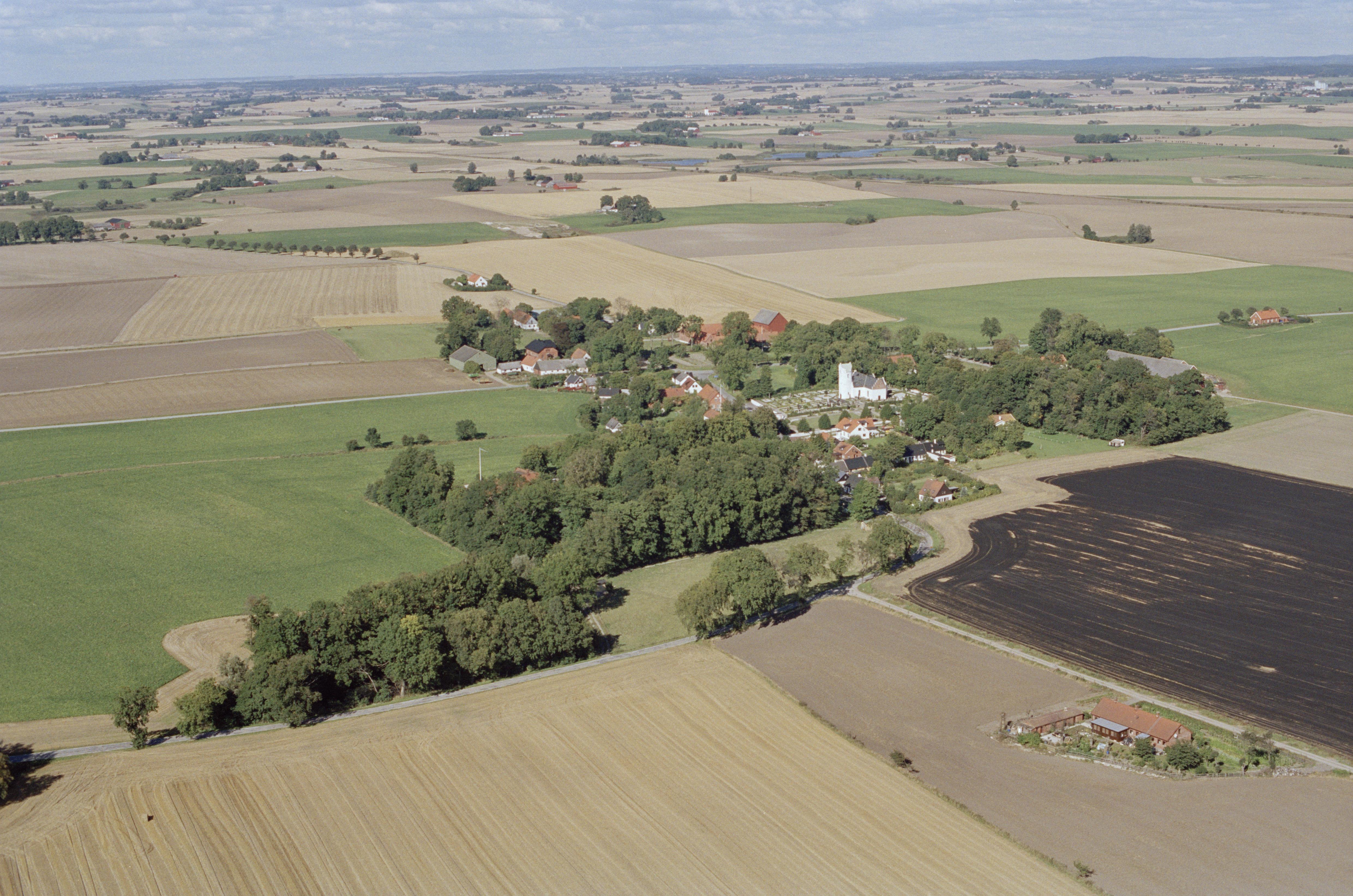 Beskrivning: Hammarlövs kyrka och kyrkby. Bilden är tagen mot (väderstreck): NO