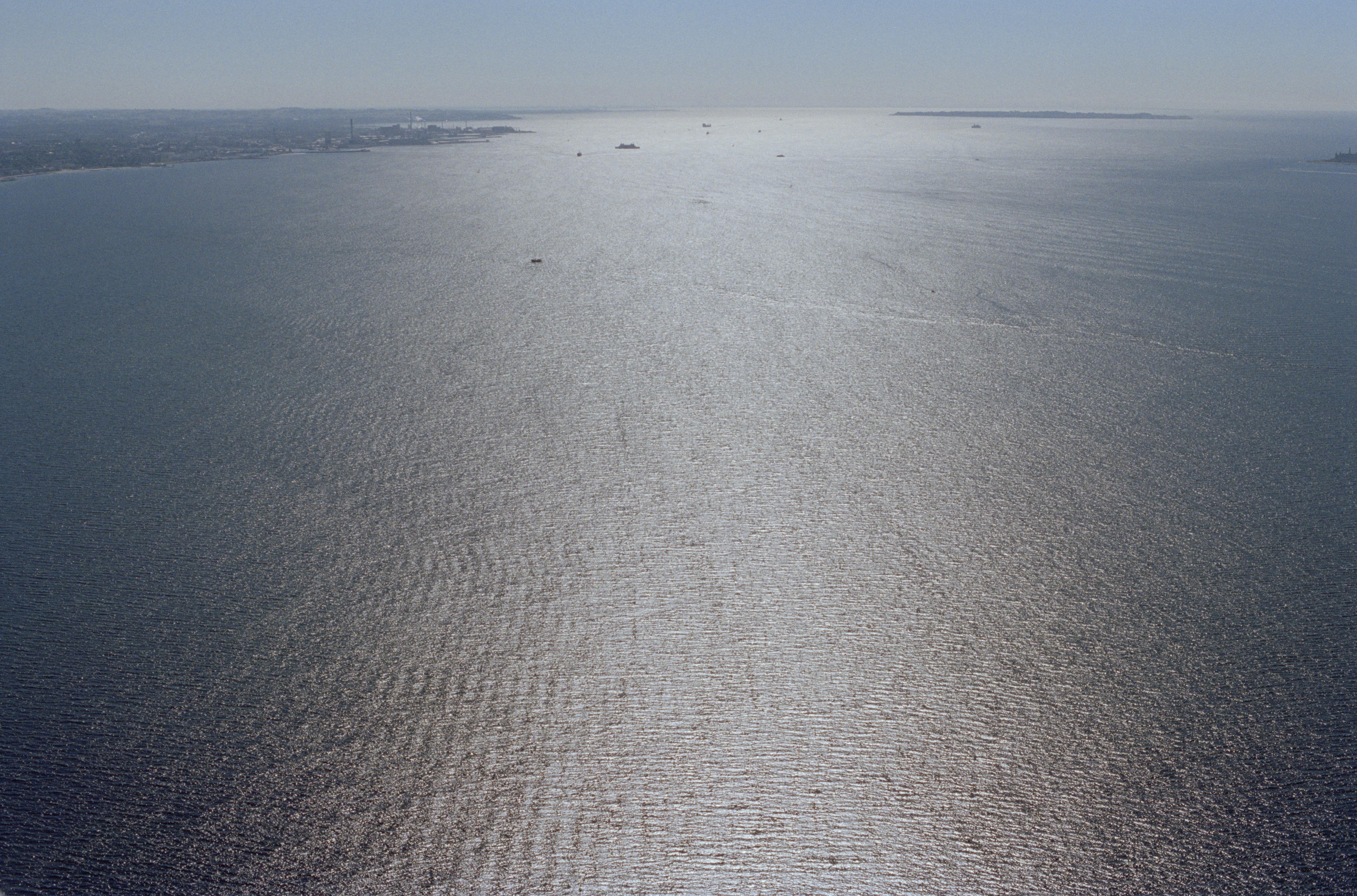 Beskrivning: Vy över Öresund från Helsingborgsområdet. Ön Ven uppe till höger. Bilden är tagen mot (väderstreck): S