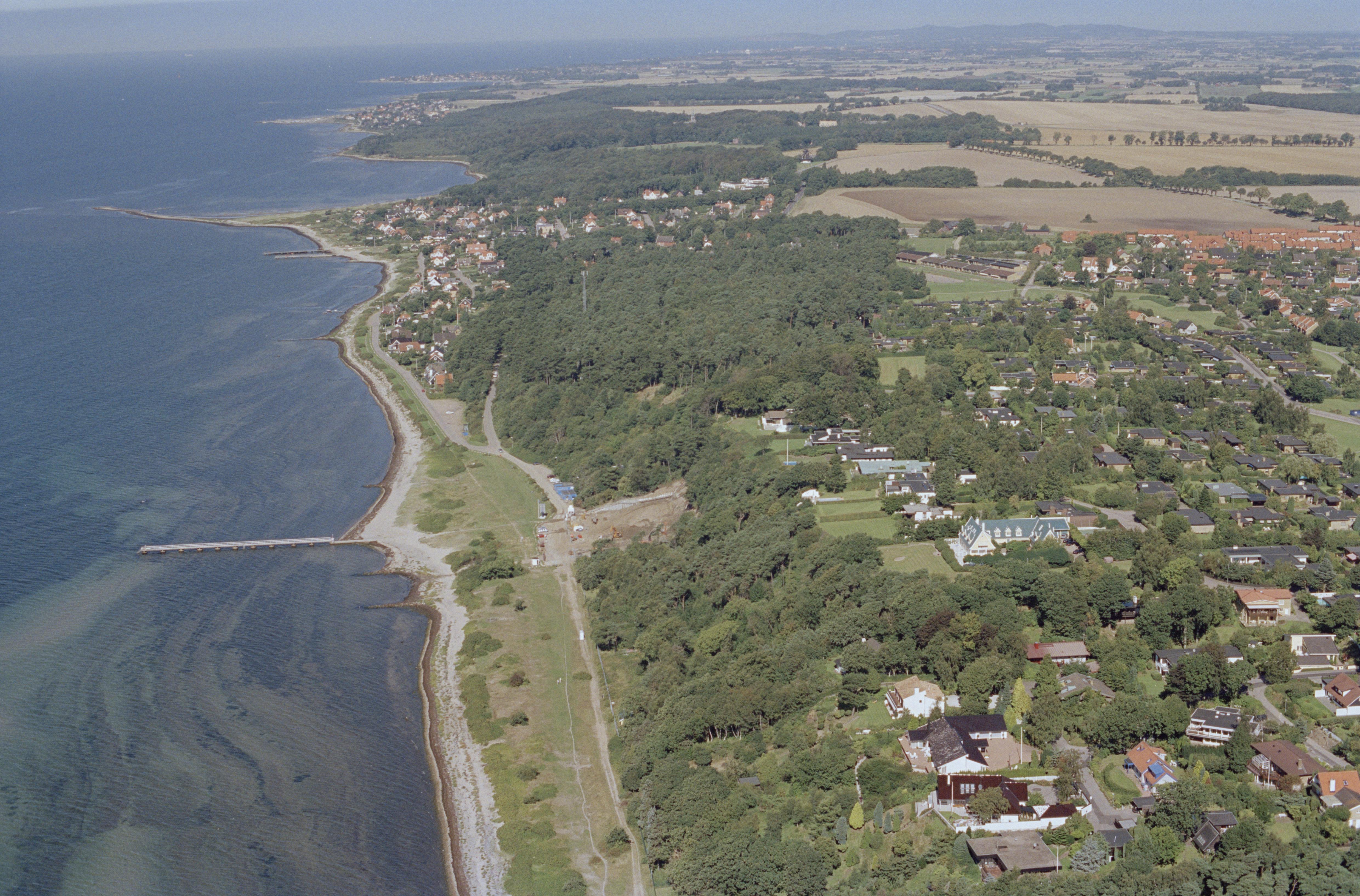 Beskrivning: Hittarps tätort i bildens nedre del. Vid bildens mitt slottet Kulla Gunnarstorp RAÄnr Allerum 17:1. I bildens övre del till vänster fiskeläget Domsten. Bilden är tagen mot (väderstreck): NV