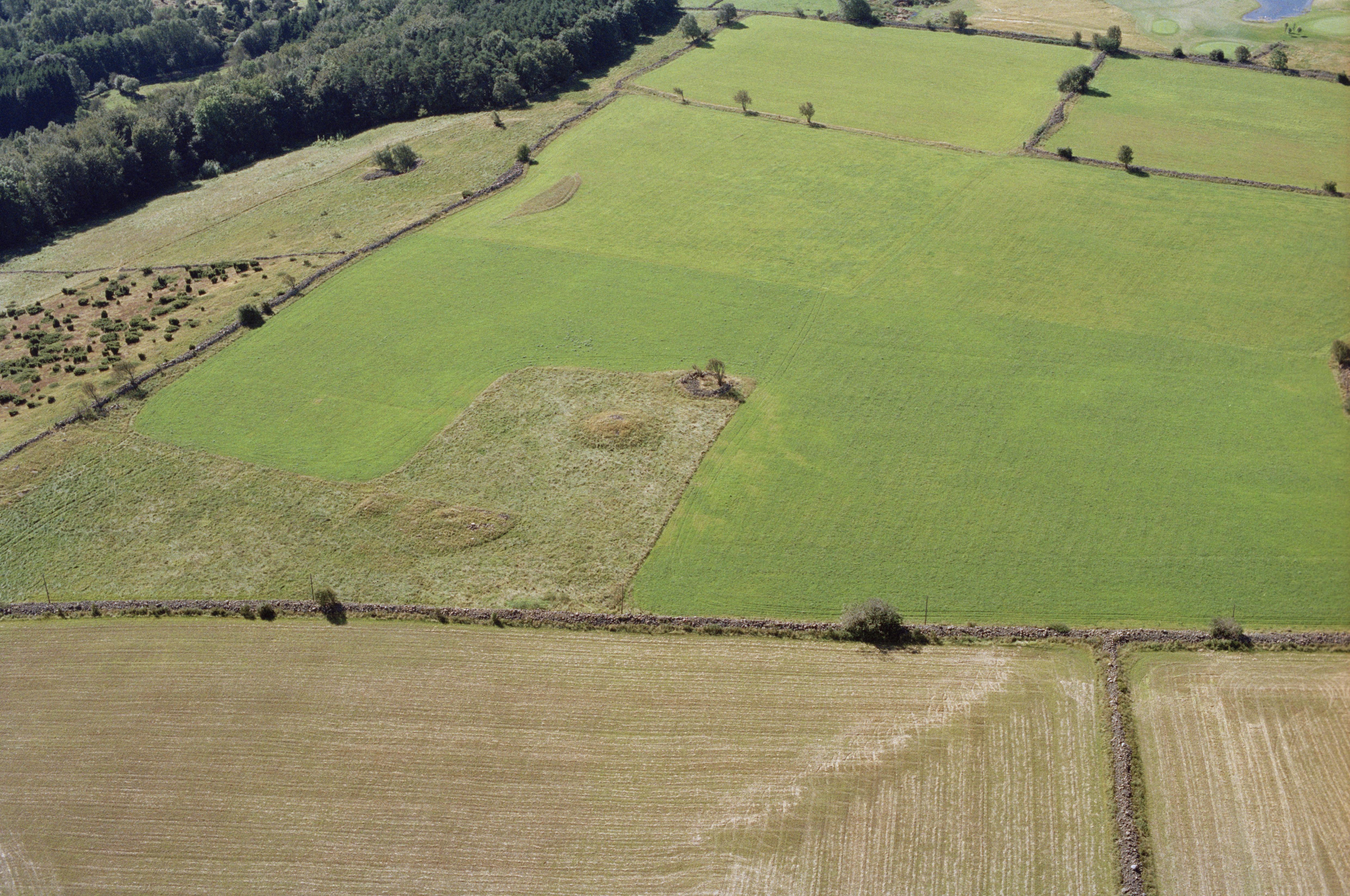 Beskrivning: Gravfält RAÄnr Grevie 54:1 och gravhög Långabjärshögen RAÄnr Grevie 119:1 vid gränsen till socknet Västra Karup (i bildens nedre del). Bilden är tagen mot (väderstreck): SSV