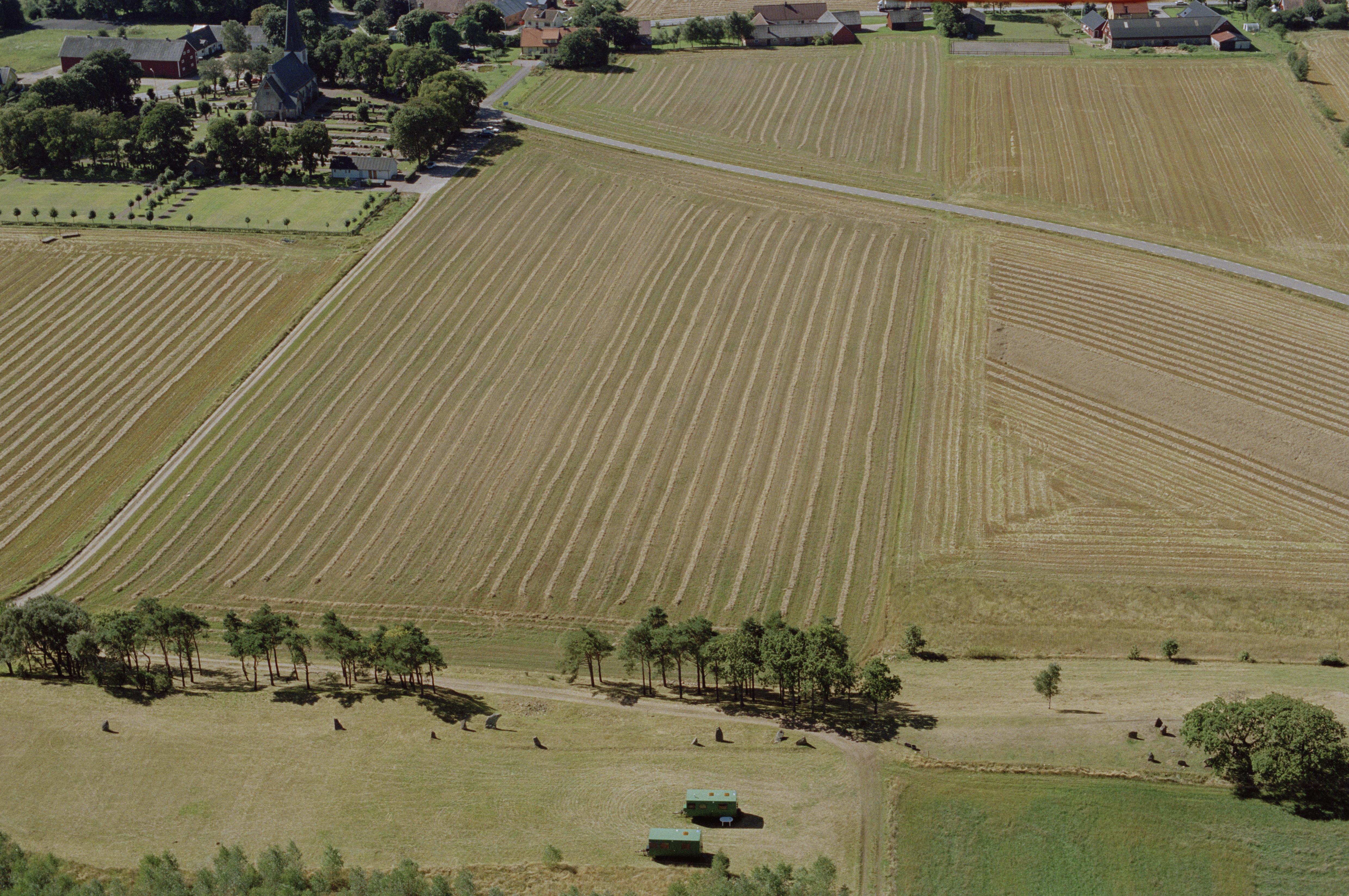 Beskrivning: Anmärkning (övrig): Riksintresse-nr/namn: N39 - Tjärby. Socken: Tjärby. Motivering: Förindustriell centralort och sockencentrum med sannolik kontinuitet ända sedan bronsåldern. (Fornlämningsmiljö). - Uttryck för riksintresset: Kyrkbybebyggelse från 1700-1900-tal. Tegelkyrka (1906), tingshus i timmer från 1700talet, gästgiveri från 1850 vid den gamla kusthuvudvägen. Omgivande odlingslandskap med stor koncentration av fornlämningar, storhögar och resta stenar. - I området ingår även: Nebo-parken med utsiktstorn (urspr. sommarbostad) uppfört 1926 på Veingehöjden intill Trehögarna. [Texten uppdaterat av Riksantikvarieämbetet våren 2013.] Beskrivning: Gravfält "Örelids stenar" RAÄnr Tjärby 37:1, hög Tjärby 16:1 och Tjärby 17:1 m.fl. I bildens övre del till vänster Tjärby kyrka. Bilden är tagen mot (väderstreck): V Fotosyfte: Flygbildsdokumentation