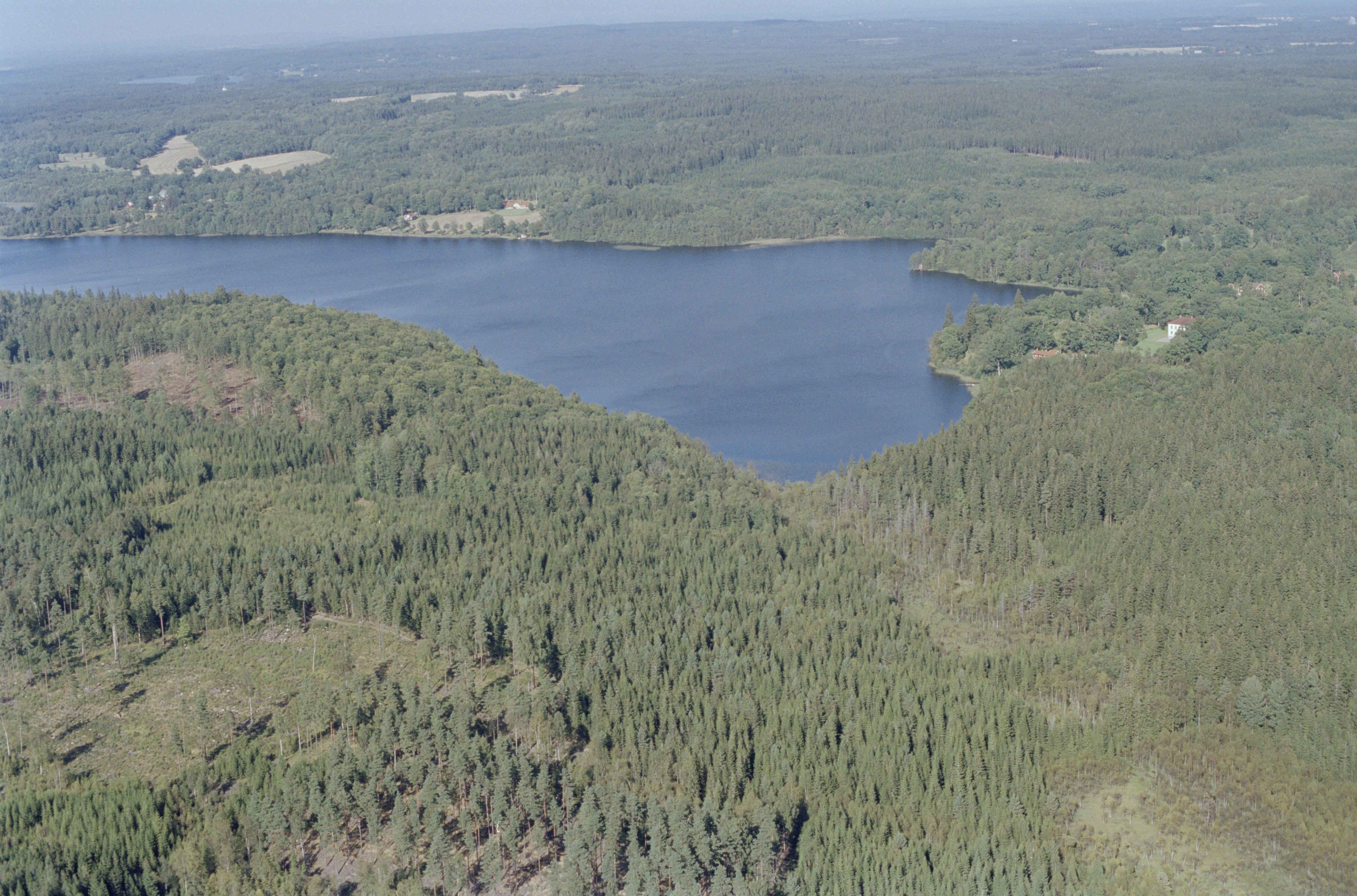 Beskrivning: Till höger om bildens mitt och Åminne järnbruk RAÄnr Kärda 119:1 och Åminne herrgård vid Källundasjön. Bilden är tagen mot (väderstreck): NO