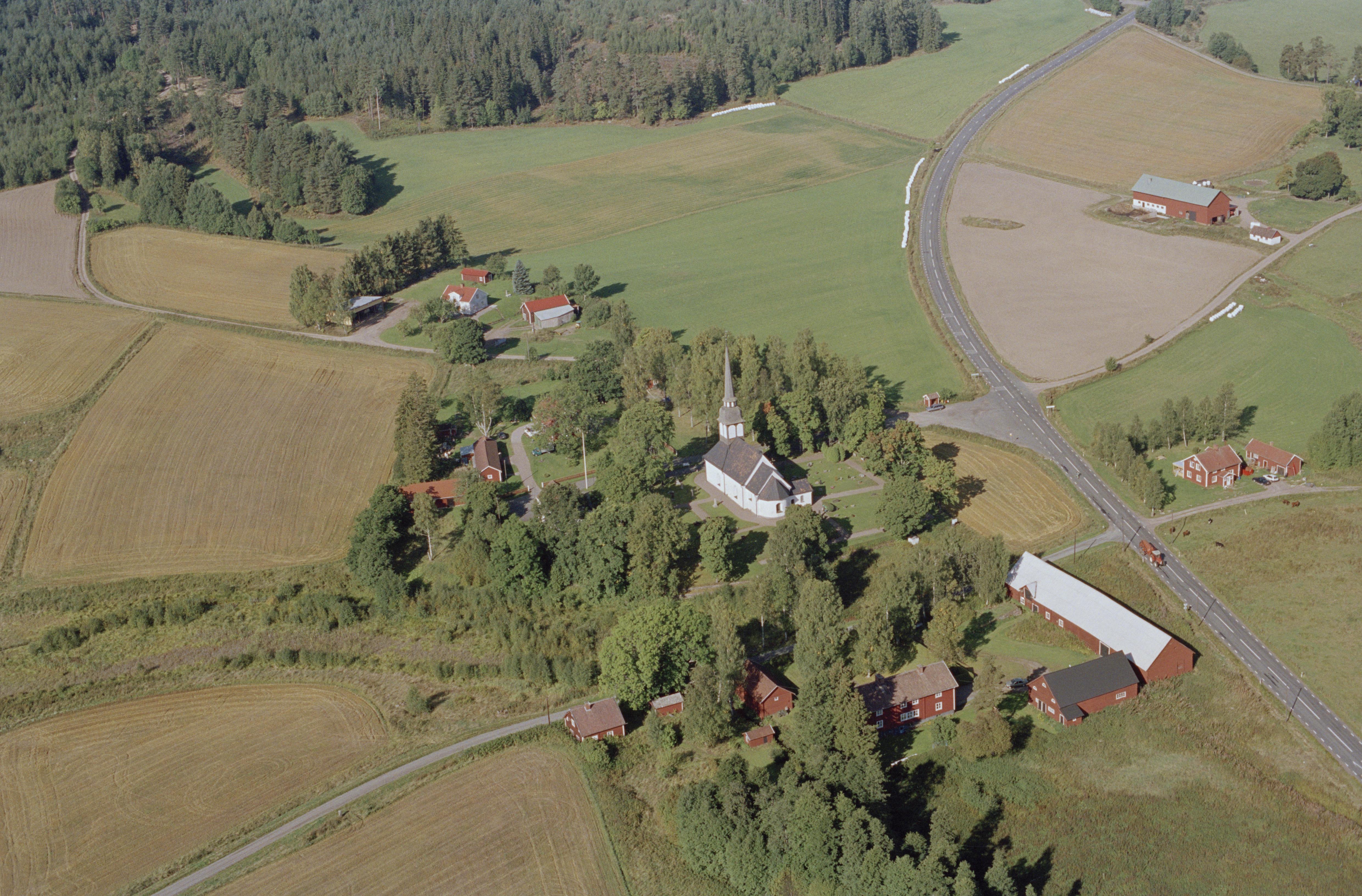 Beskrivning: Bredestads kyrka och kyrkby. Bilden är tagen mot (väderstreck): NV