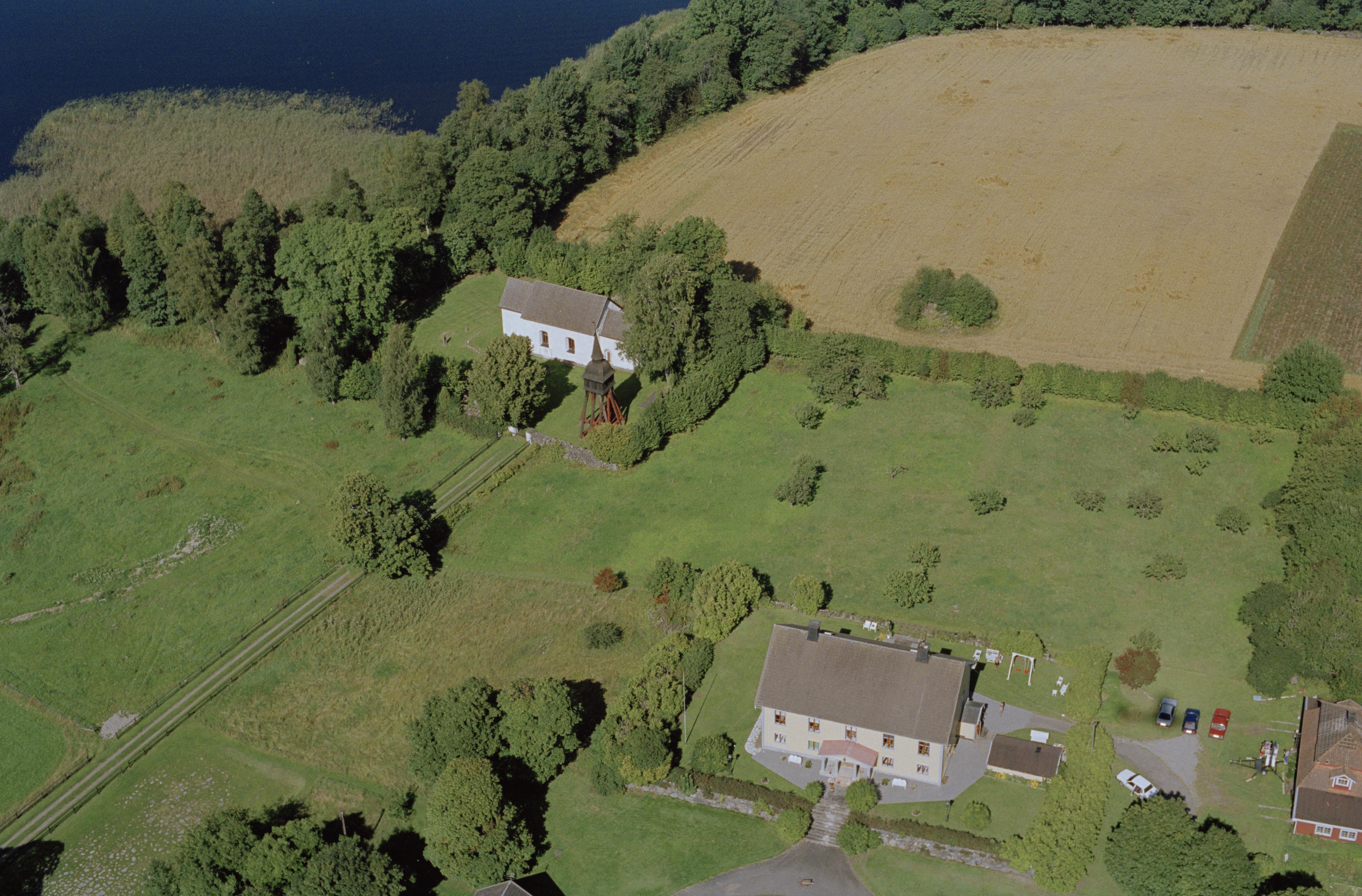 Beskrivning: Vallsjö gamla kyrka och prästgård vid Vallsjön. Bilden är tagen mot (väderstreck): N