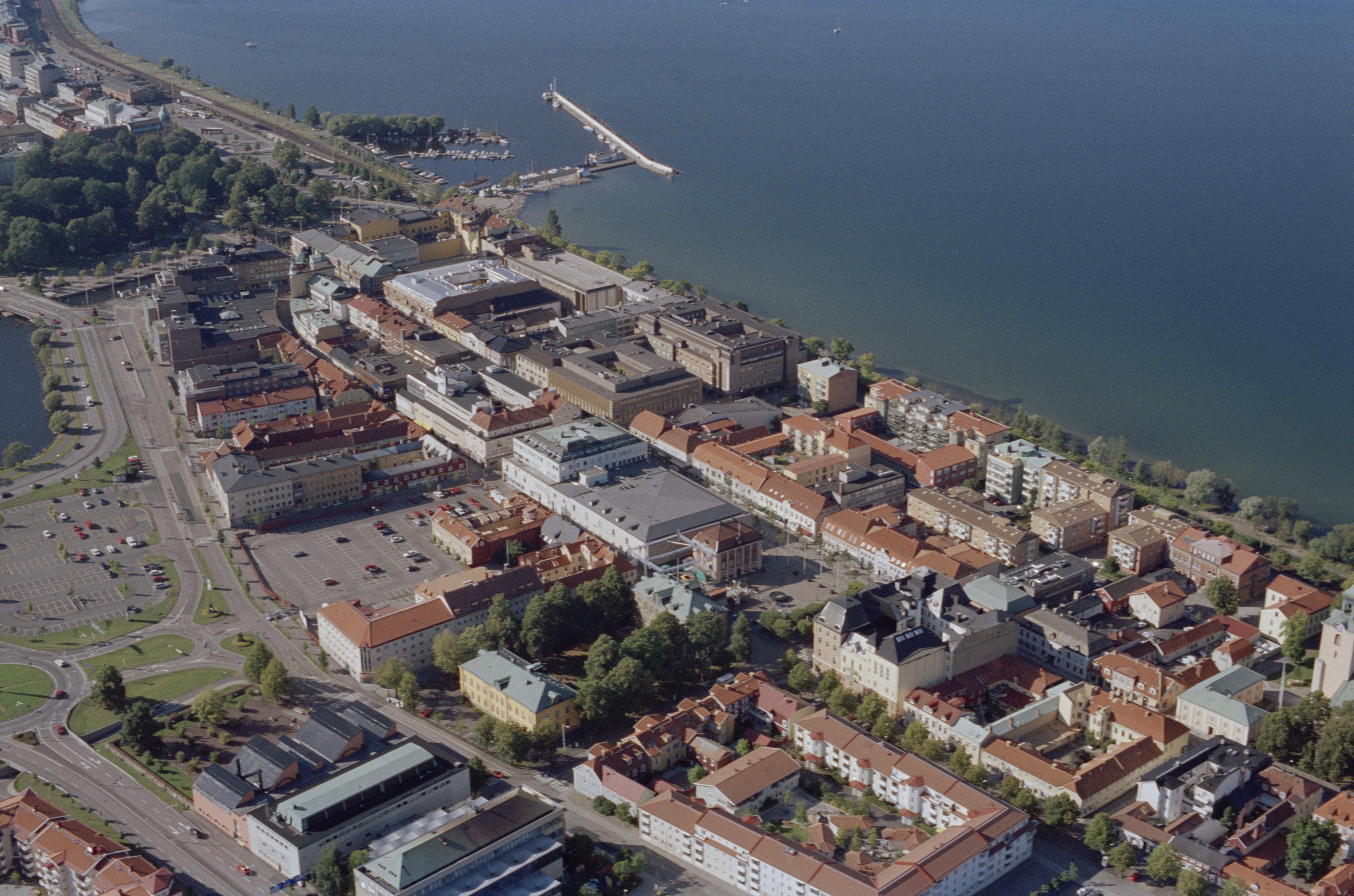 Beskrivning: Jönköpings stad vid sjön Vättern. Kristine kyrka nere till höger. Bilden är tagen mot (väderstreck): N