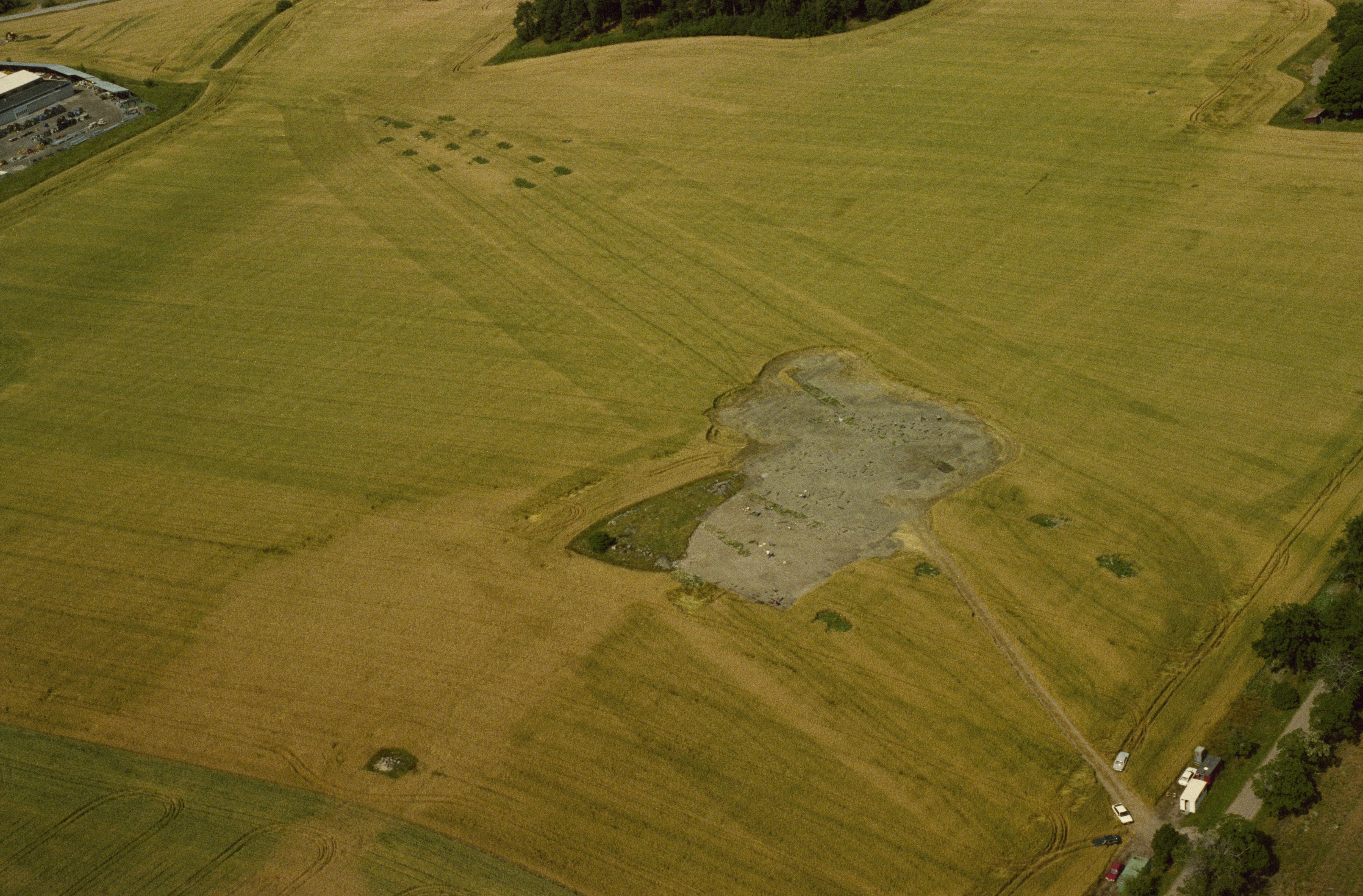 Beskrivning: Linköpings stad. Arkeologisk undersökning (innan vägbygge) vid Mörtlösa i stadsdelen Kallerstad. Boplats och hällristningar Linköping 326:1-3. Bilden är tagen mot (väderstreck): NV