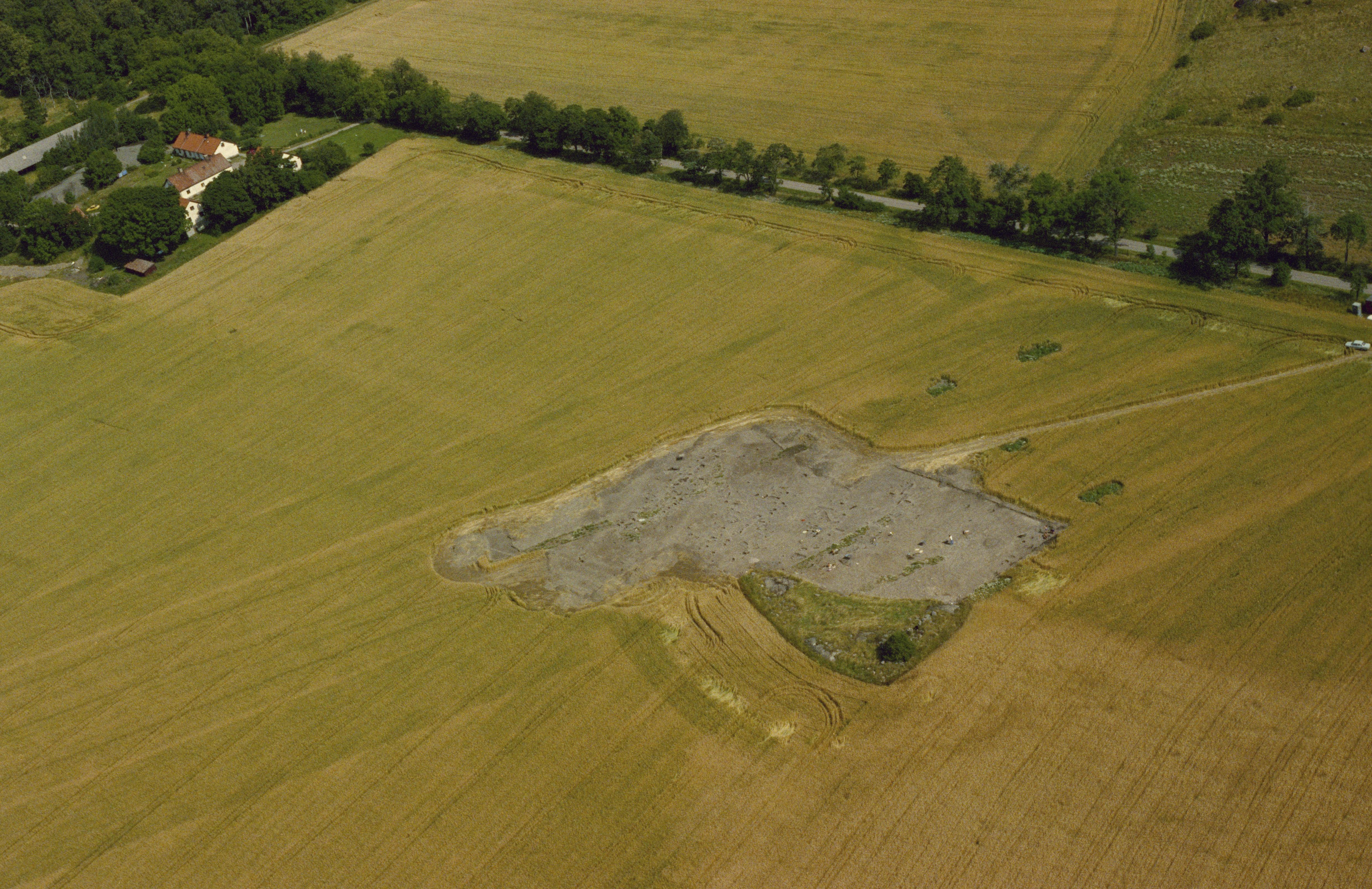 Beskrivning: Linköpings stad. Arkeologisk undersökning (innan vägbygge) vid Mörtlösa i stadsdelen Kallerstad. Boplats och hällristningar Linköping 326:1-3. Bilden är tagen mot (väderstreck): NO