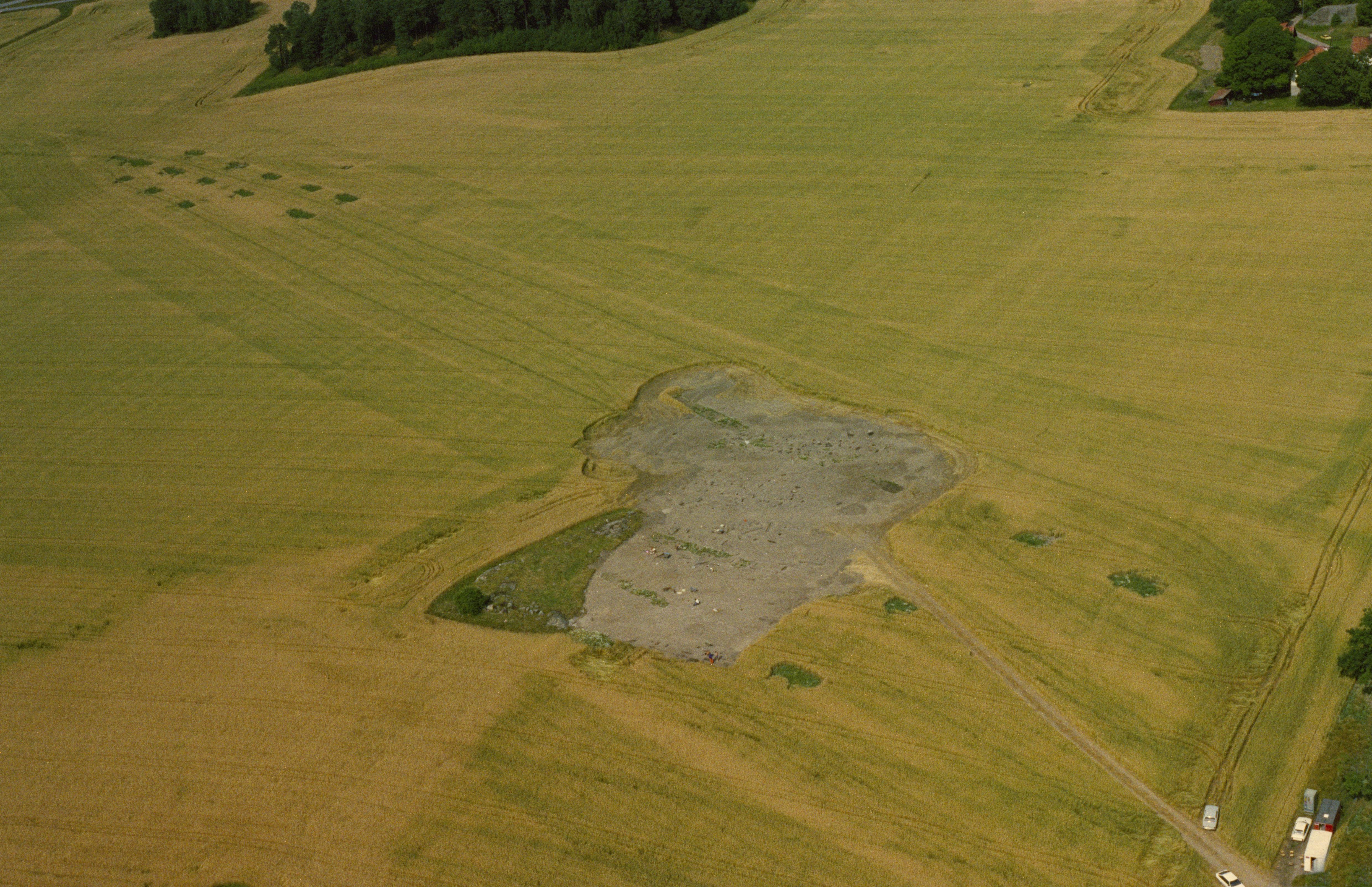 Beskrivning: Linköpings stad. Arkeologisk undersökning (innan vägbygge) vid Mörtlösa i stadsdelen Kallerstad. Boplats och hällristningar Linköping 326:1-3. Bilden är tagen mot (väderstreck): NV