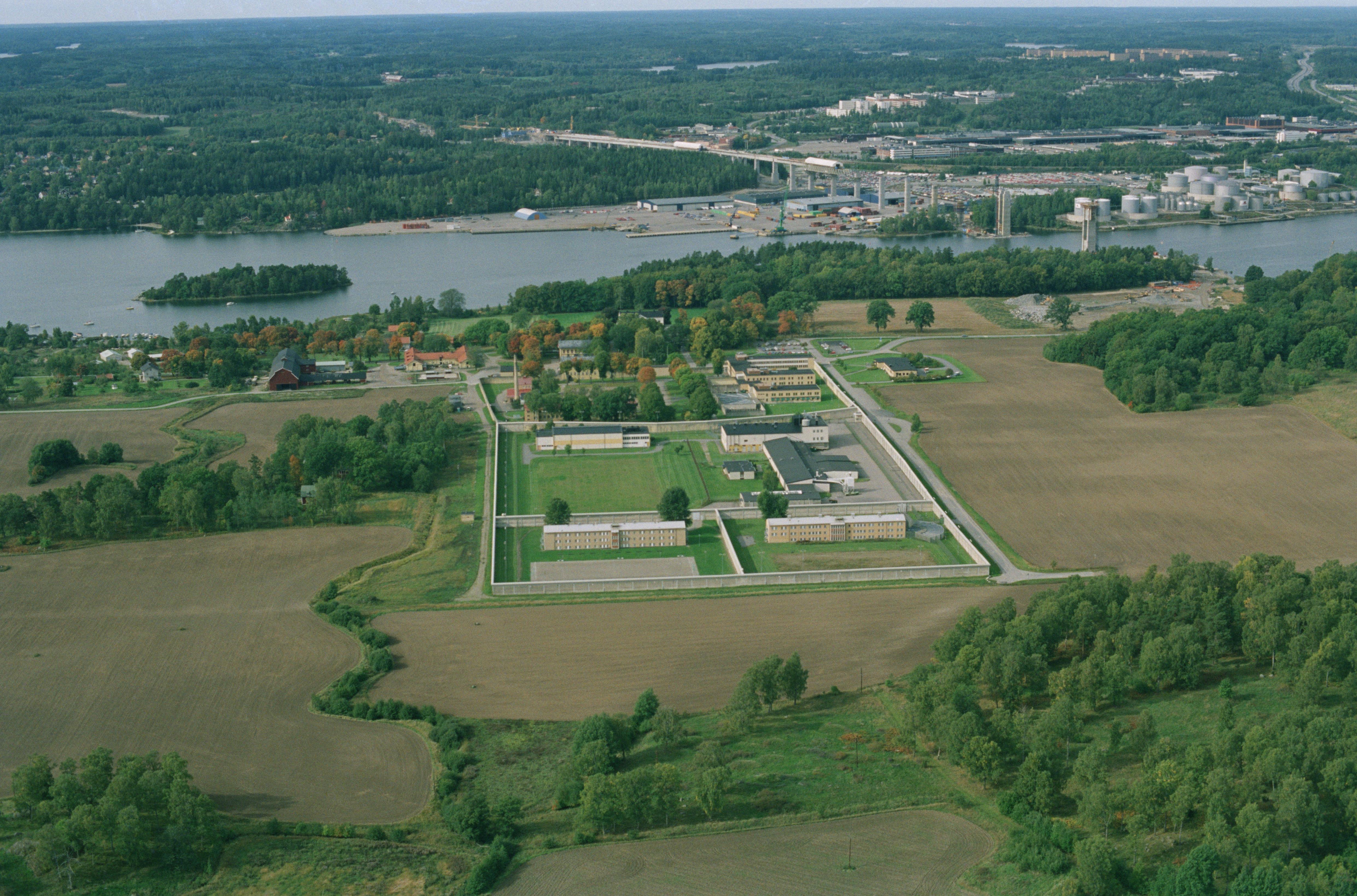 Beskrivning: Anstalten Hall vid Igelstaviken. Till höger om bildens mitt Hågelby gamla tomt RAÄnr Östertälje 242:1. I bildens övre del Sydhamnen i Södertälje stad. Bilden är tagen mot (väderstreck): V