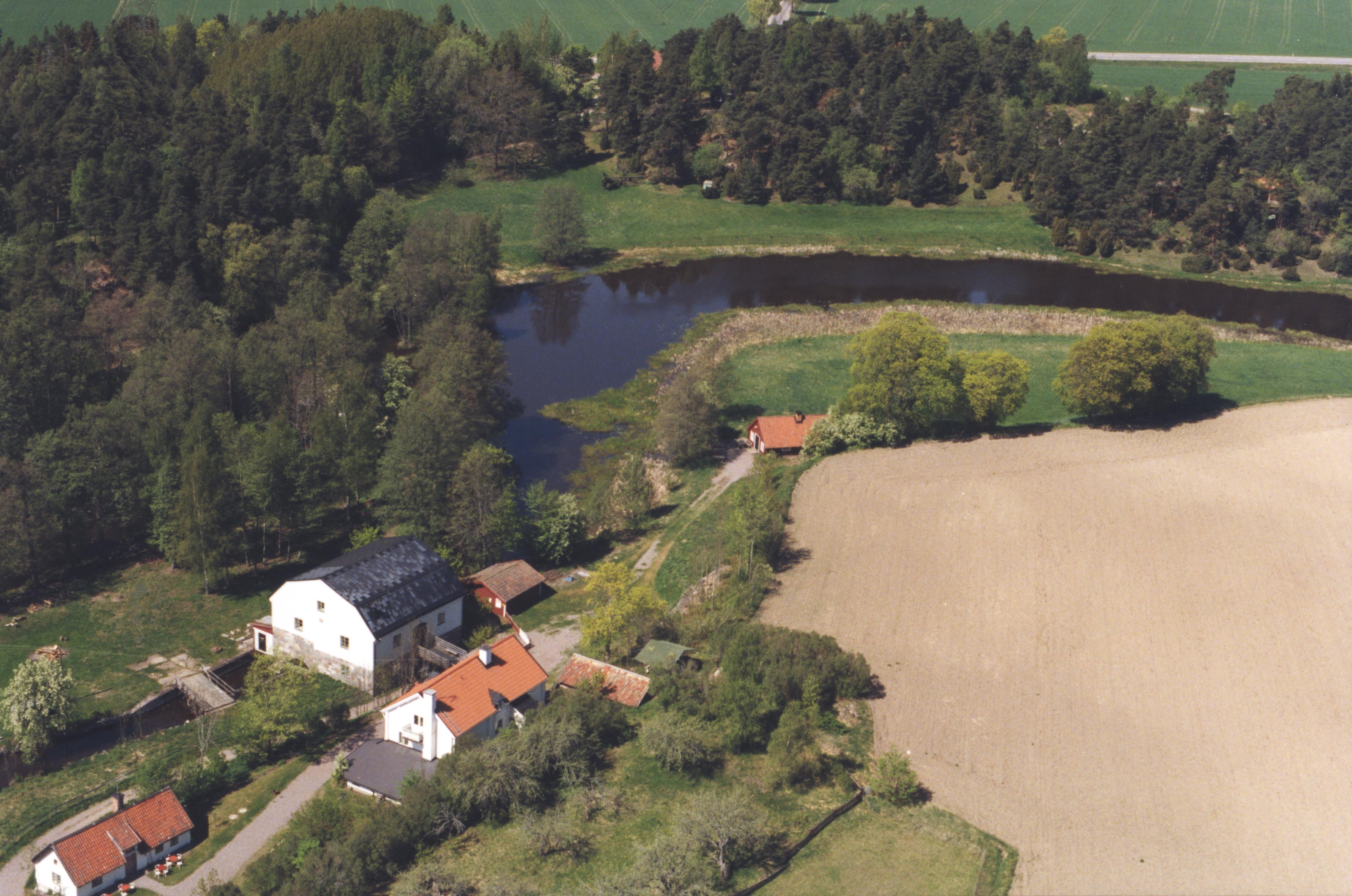 Beskrivning: Ekeby kvarn och bytomt RAÄnr Uppsala 768 och 770 vid Fyrisån. Uppe i bildens högerkant Ärentuna socken. Bilden är tagen mot (väderstreck): NV