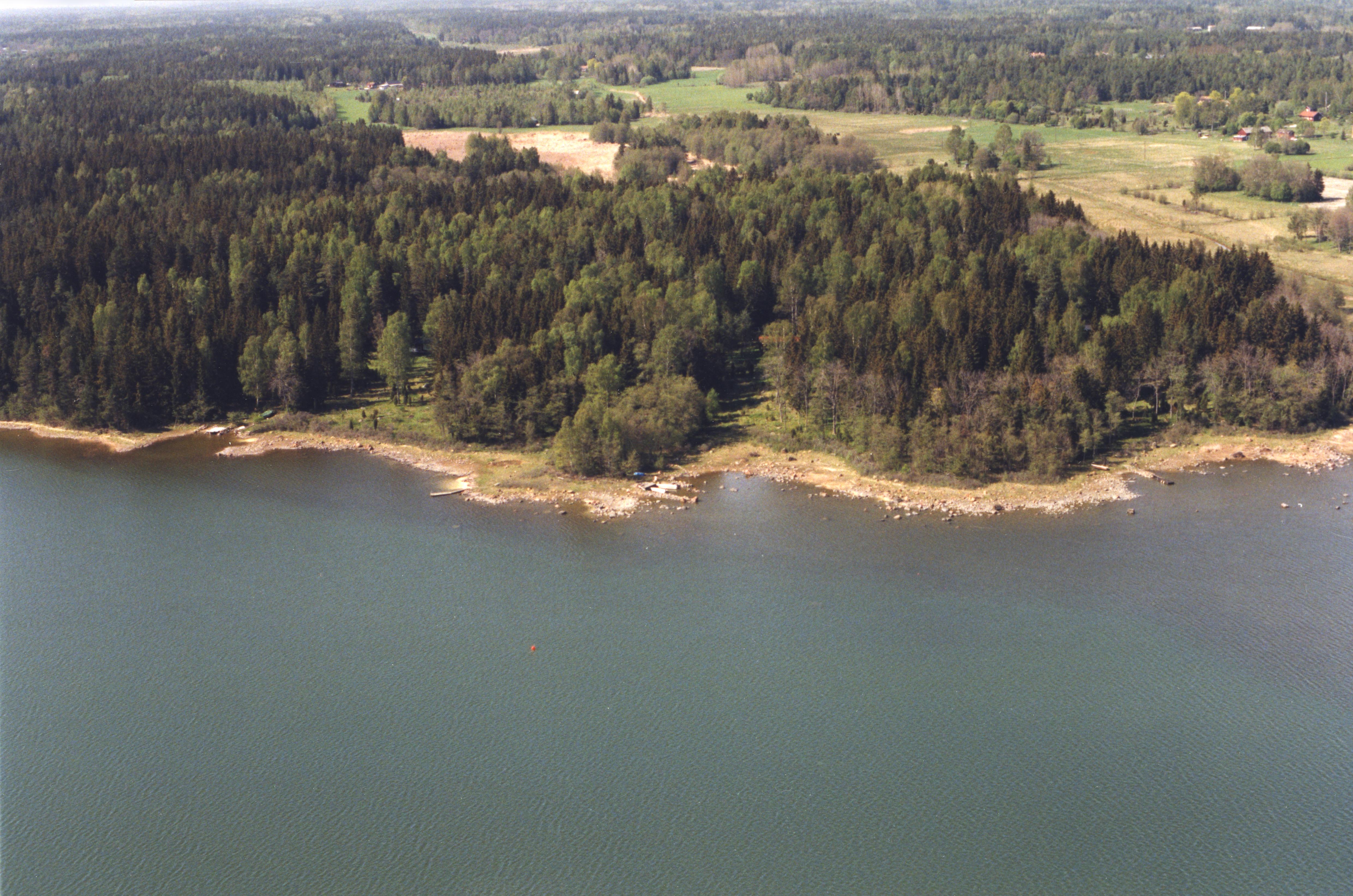 Beskrivning: Söderön vid Raggaröfjärden. I skogen över bildens mitt finns tre fritidshus på Fäholmen (husen syns inte i bilden pga höga träd). I mitten av de tre är fastighet nr 113 (se bild NF980098). I bildens övre del Yttersby. Bilden är tagen mot (väderstreck): N
