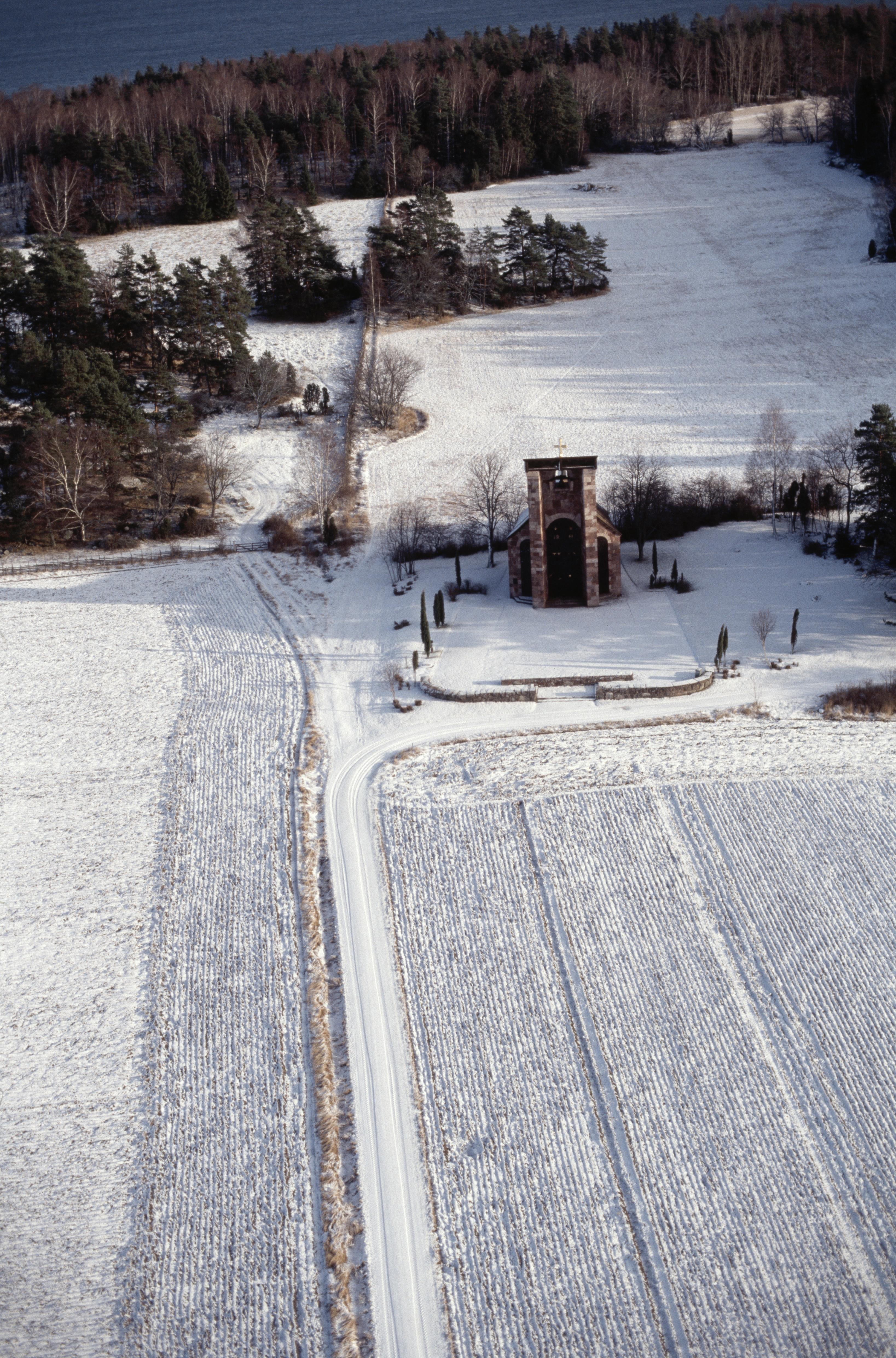 Beskrivning: Björkö kapell (Ansgarskapellet) vid Björkö by och Birka på ön Björkö i Mälaren. Bilden är tagen mot (väderstreck): Ö