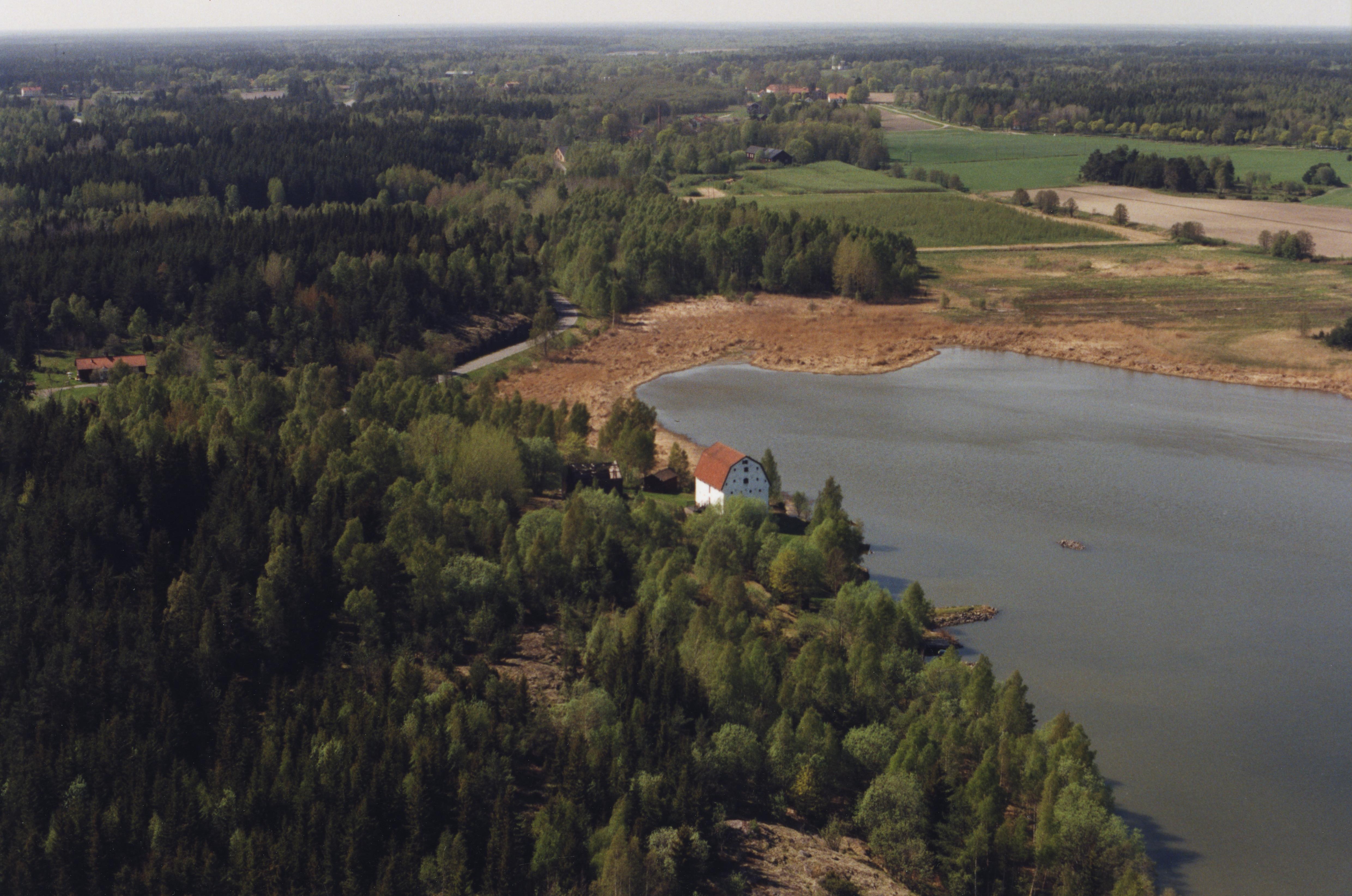 Beskrivning: I bildens övre del Hargs bruk med hammarområde RAÄnr Harg 58:1 och Hargs kyrka. Vid bildens mitt den ljusa byggnaden Hargs järnbod RAÄnr Harg 61:1 vid Hargsviken i Galtfjärden. Bilden är tagen mot (väderstreck): NV