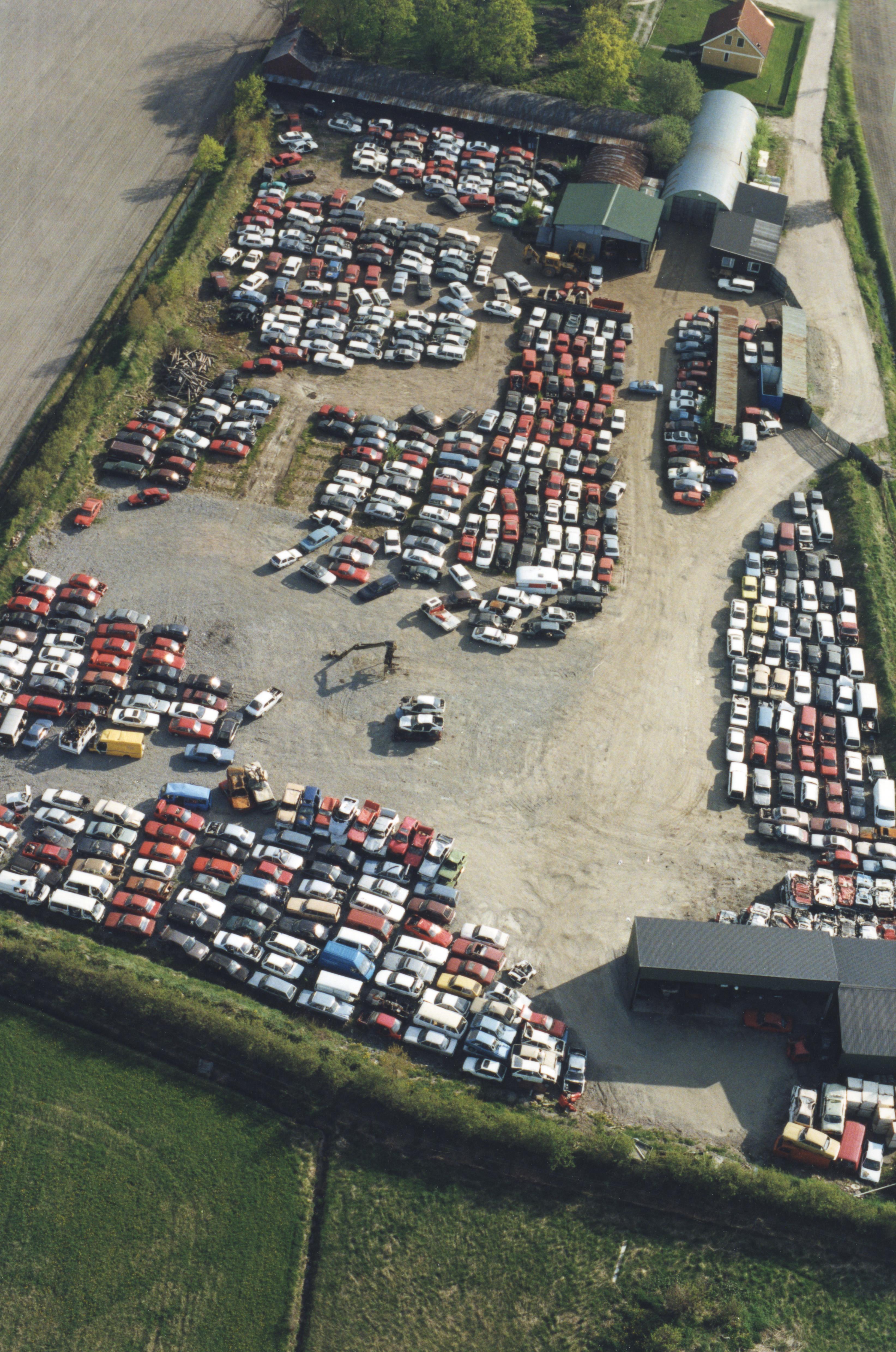 Beskrivning: Bilskrotanläggning vid Norrgården i Lunda. Bilden är tagen mot (väderstreck): SSV