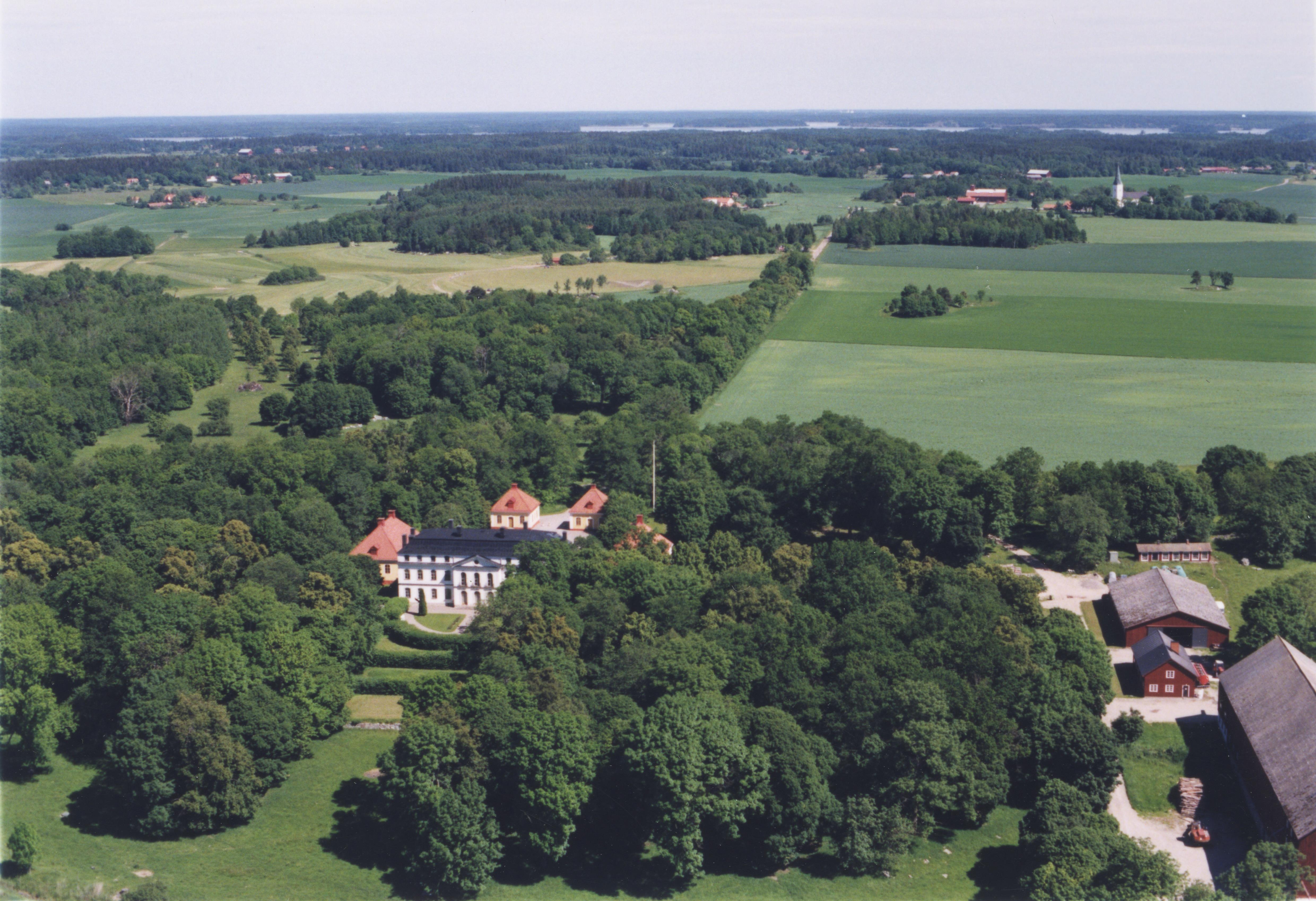 Beskrivning: Bergshammars herrgård RAÄnr Fogdö 109:1. Fogdö kyrka uppe till höger. Bilden är tagen mot (väderstreck): NNO