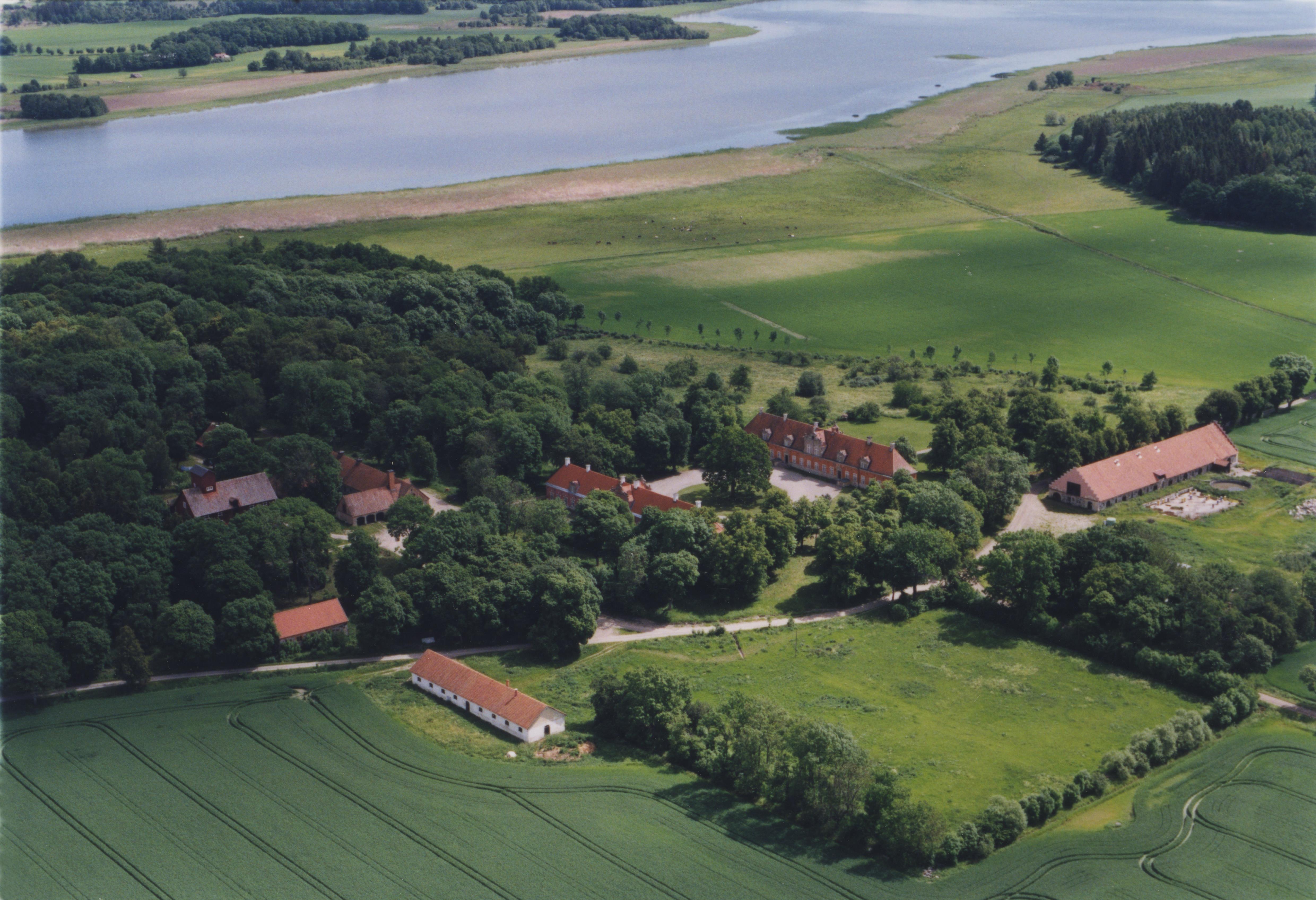 Beskrivning: Fiholms slott / sätesgård. I bildens övre del Sörfjärden. Bilden är tagen mot (väderstreck): NO