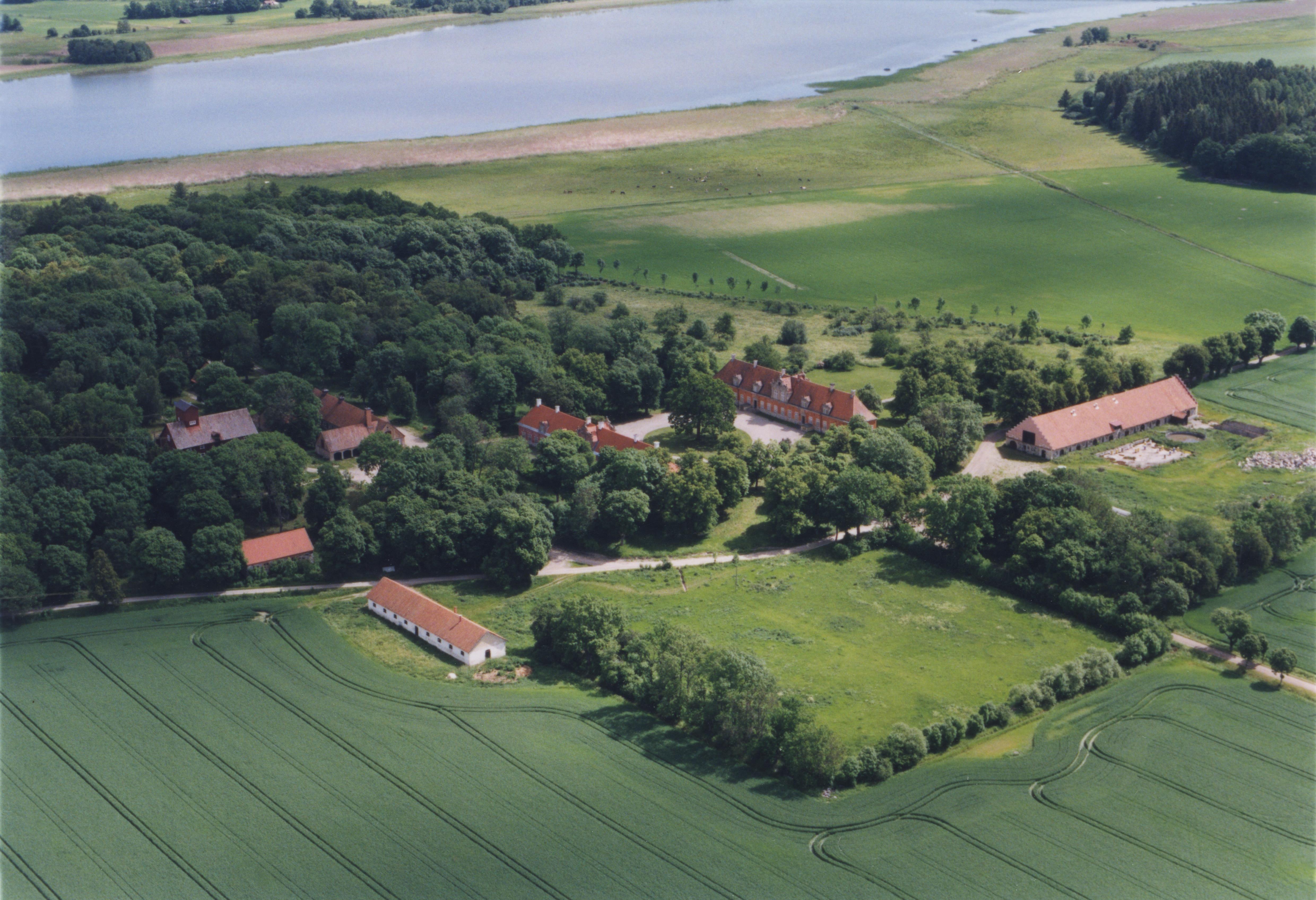 Beskrivning: Fiholms slott / sätesgård. I bildens övre del Sörfjärden. Bilden är tagen mot (väderstreck): NO