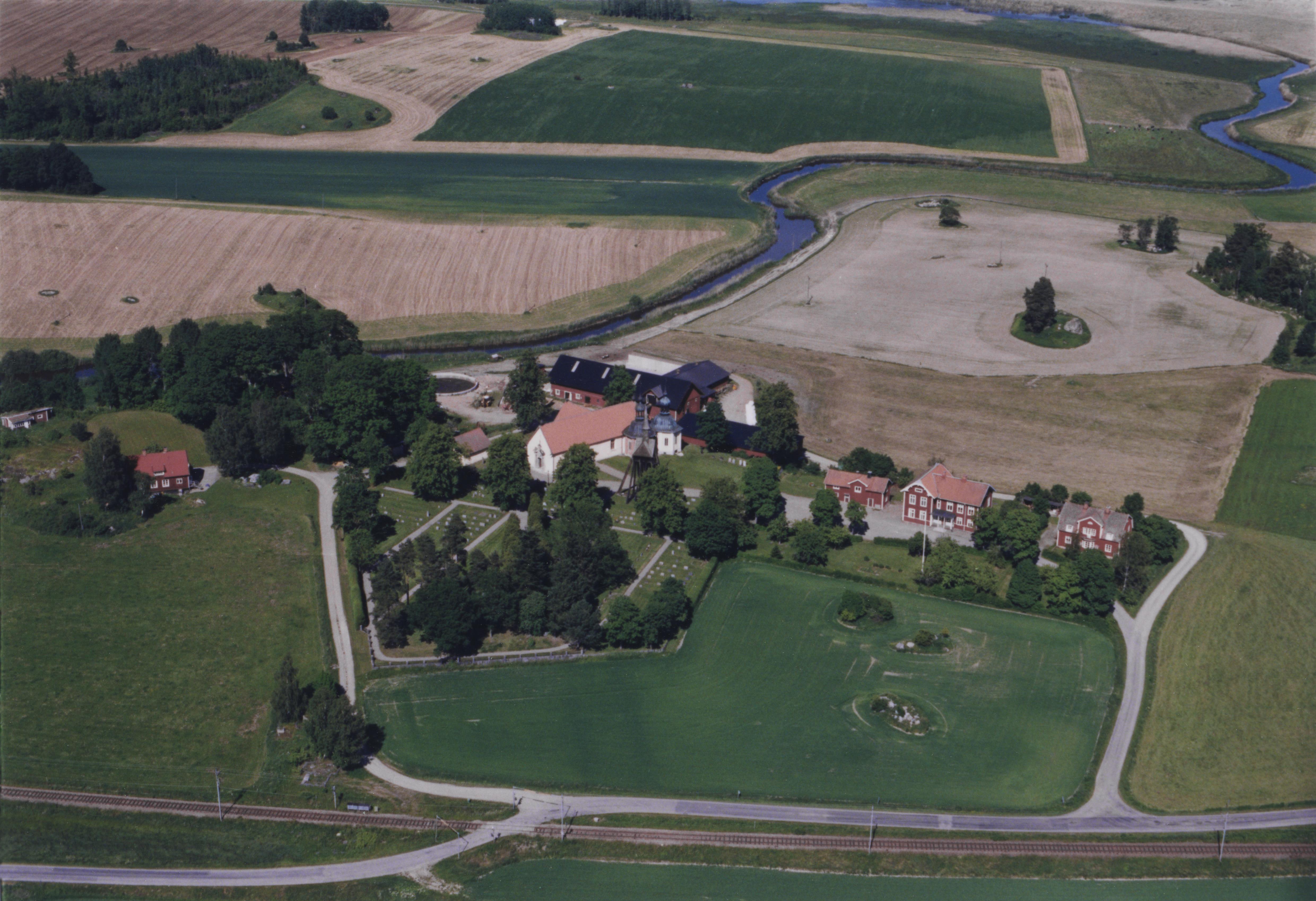 Beskrivning: Vadsbro kyrka vid Hedenlundaån. Bilden är tagen mot (väderstreck): ONO