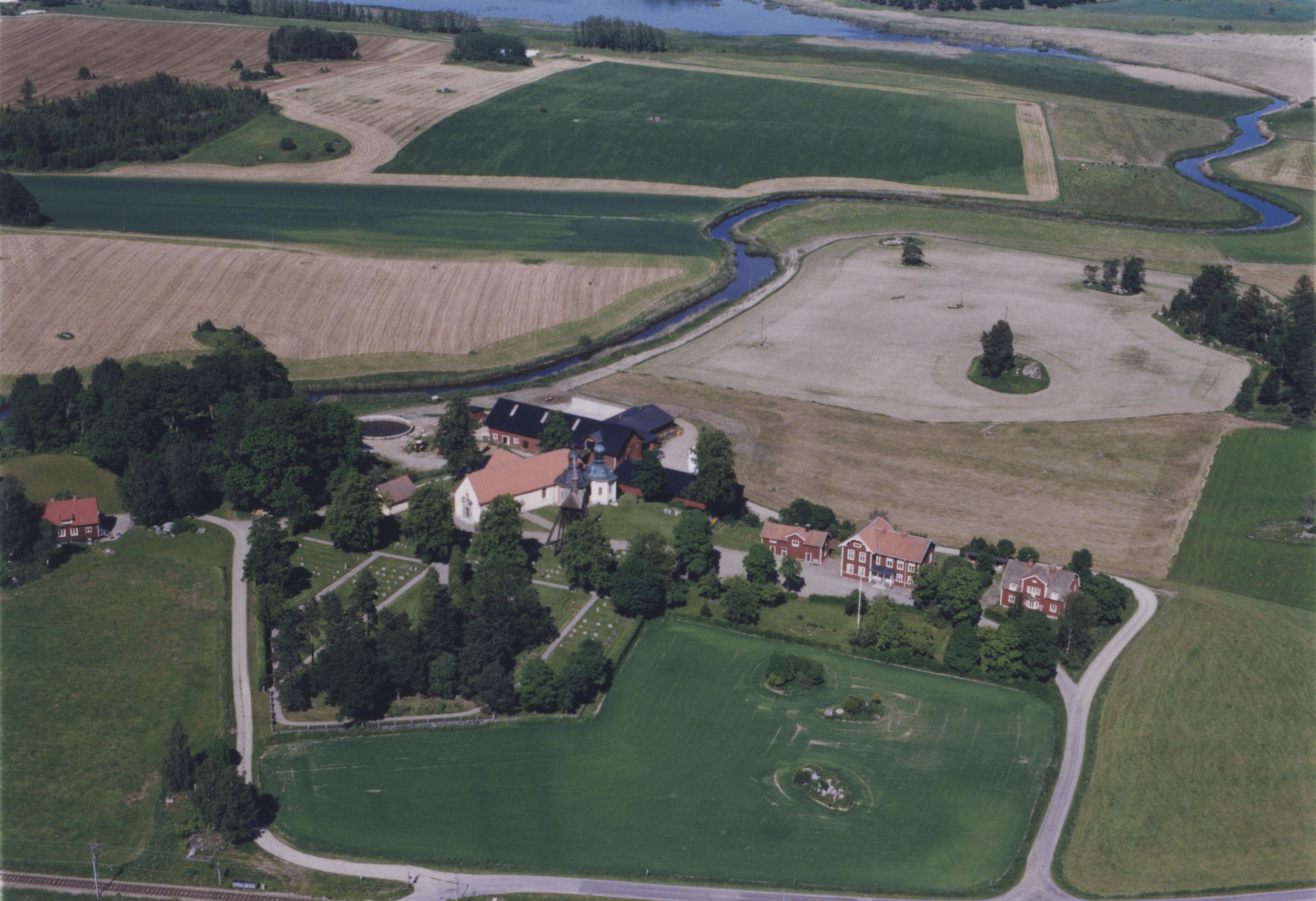 Beskrivning: Vadsbro kyrka vid Hedenlundaån. Bilden är tagen mot (väderstreck): ONO