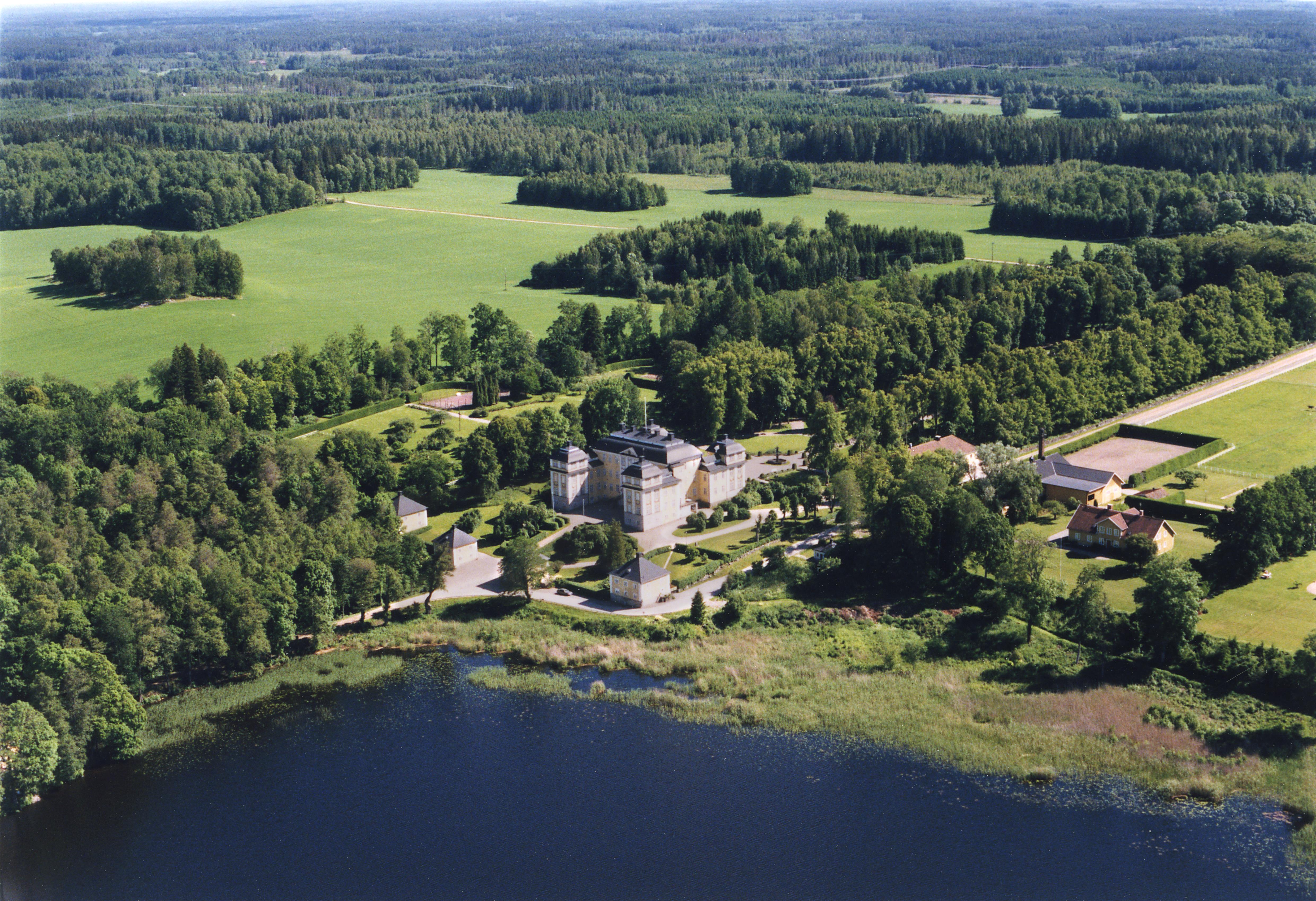 Beskrivning: Eriksbergs slott (skrivs även Ericsbergs slott), byggnadsminne RAÄnr Stora Malm 47:1, mellan Eriksbergssjön och Eriksbergsån. Bilden är tagen mot (väderstreck): SSO