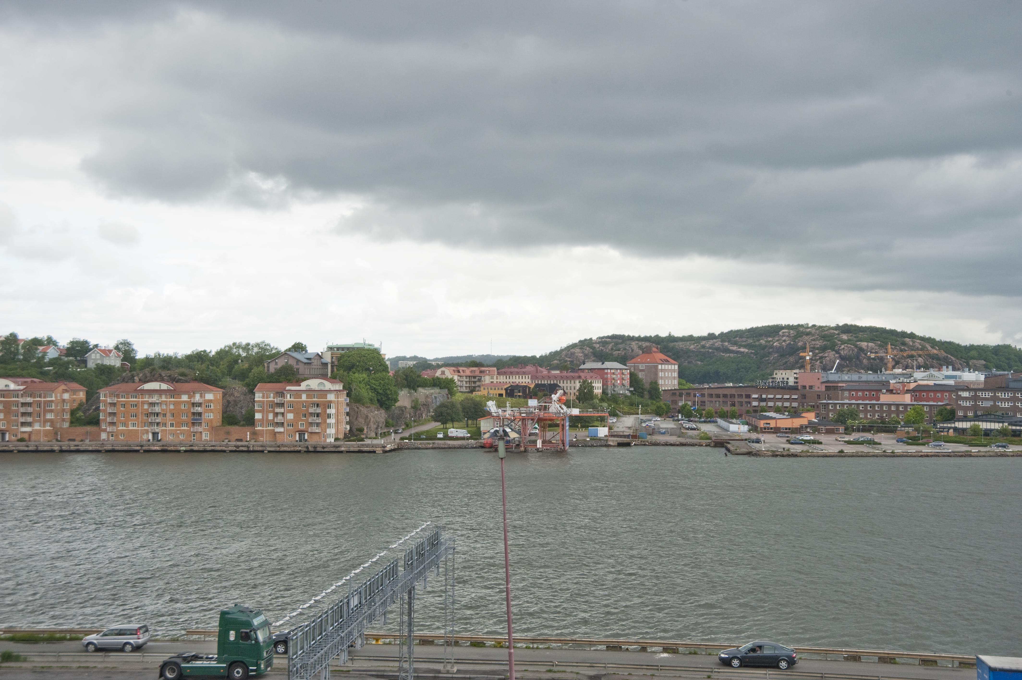 Beskrivning: Vy från restaurang Henriksberg, även kallat Lindska huset. Masthuggskajen. Återfotografering av bild DB0199.