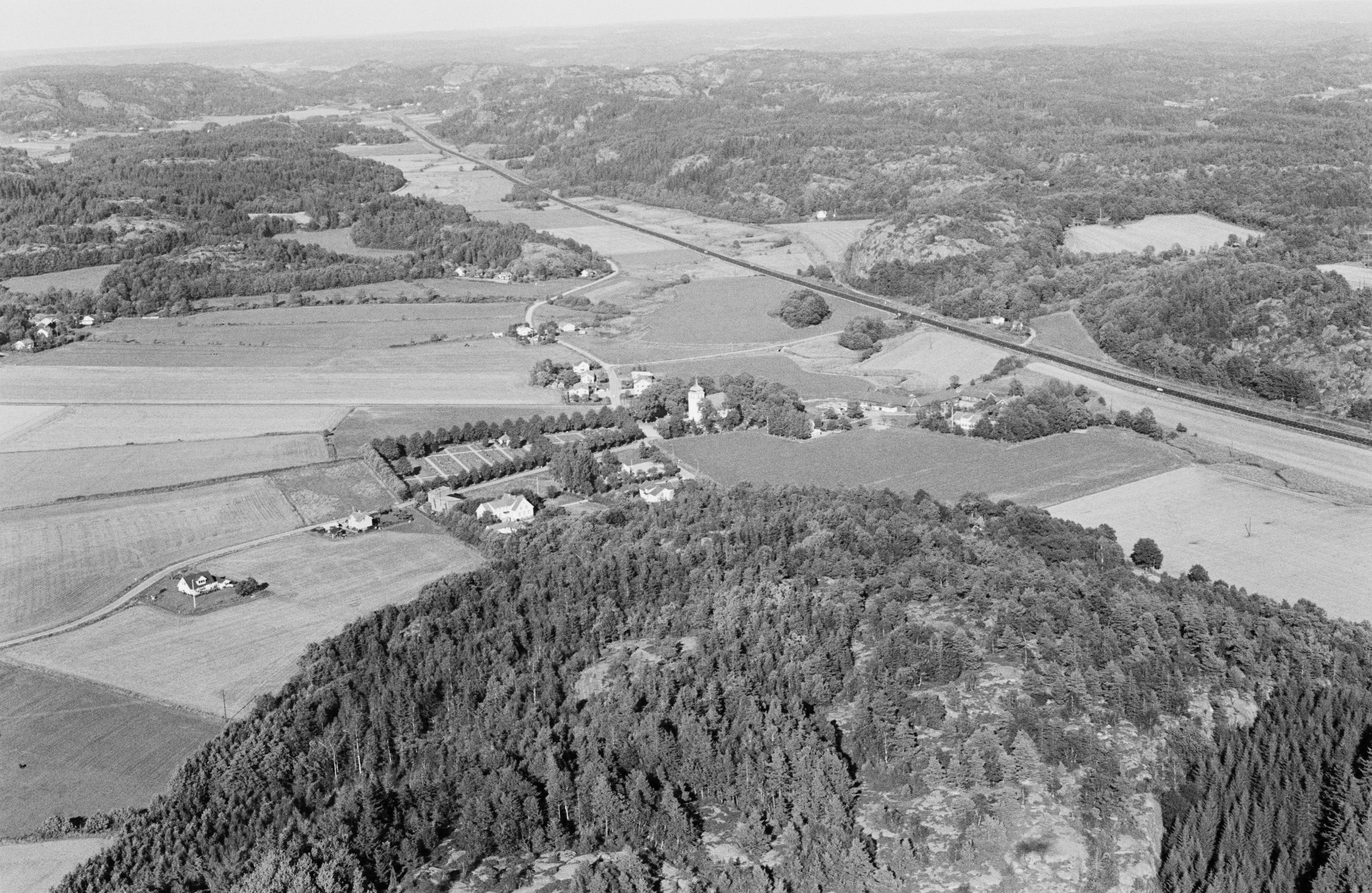 Beskrivning: Bro kyrka och kyrkby. Brofjället i bildens nedre del. Bilden är tagen mot (väderstreck): NO