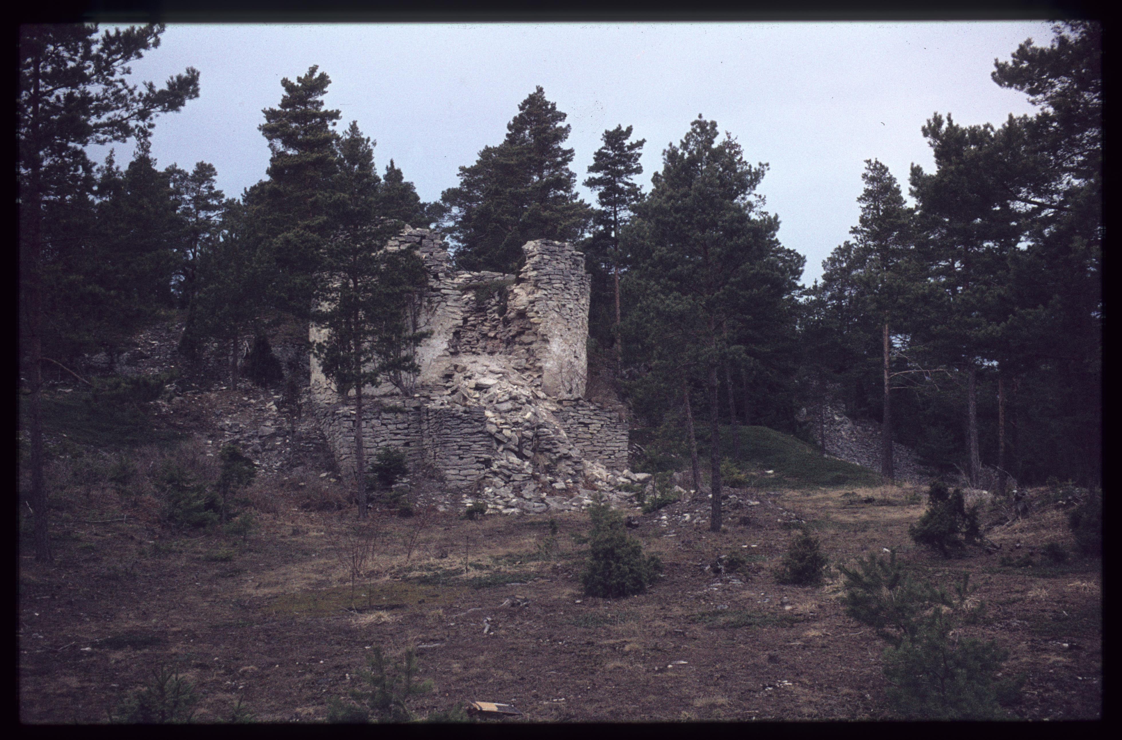 Hall 136:1. Kalkugnsruin, ca 9 m diam och 8 m h (riktning V).