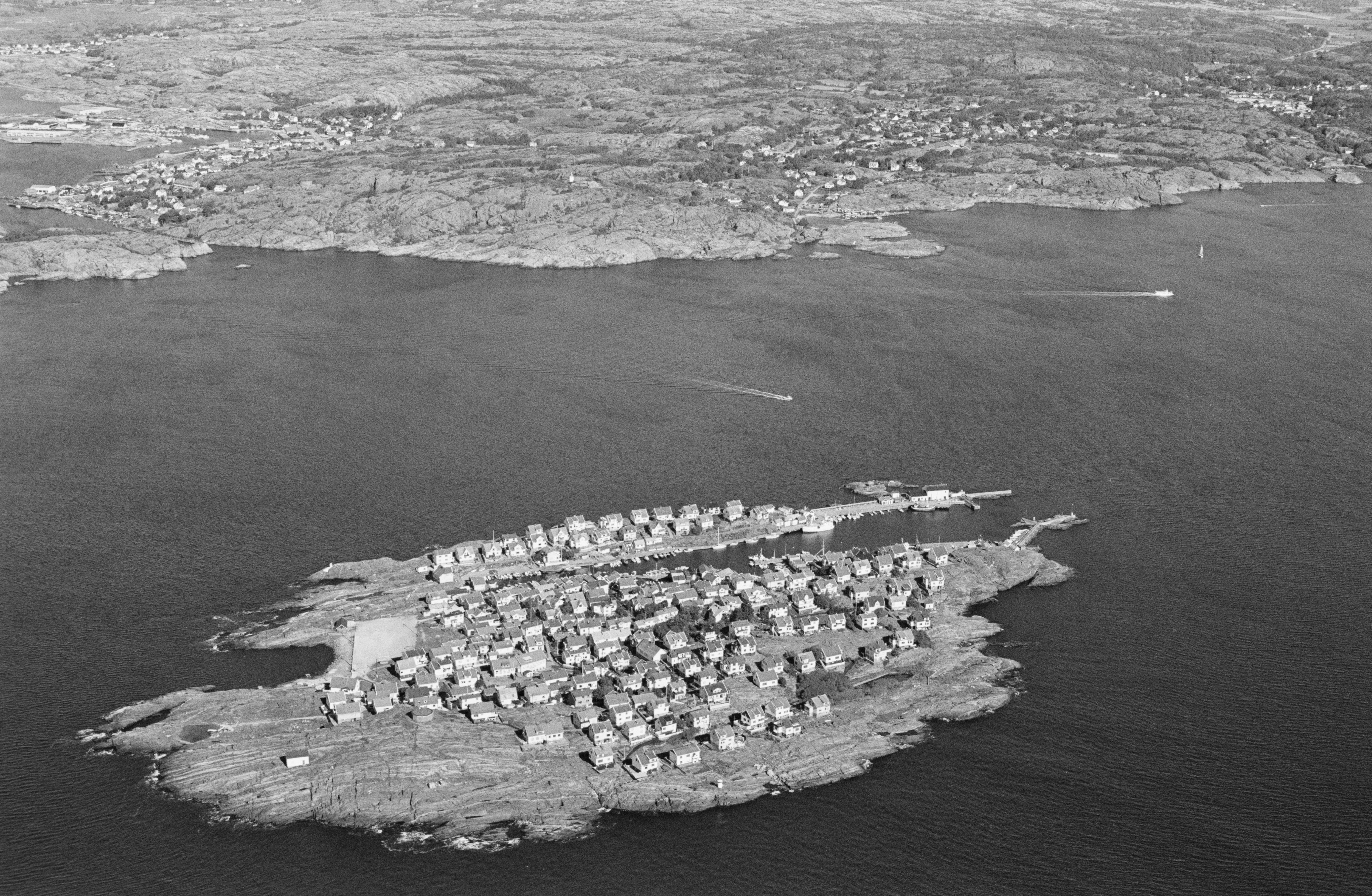Beskrivning: Ön Åstol i Marstrandsfjorden. I bildens övre del Rönnäng. Bilden är tagen mot (väderstreck): N