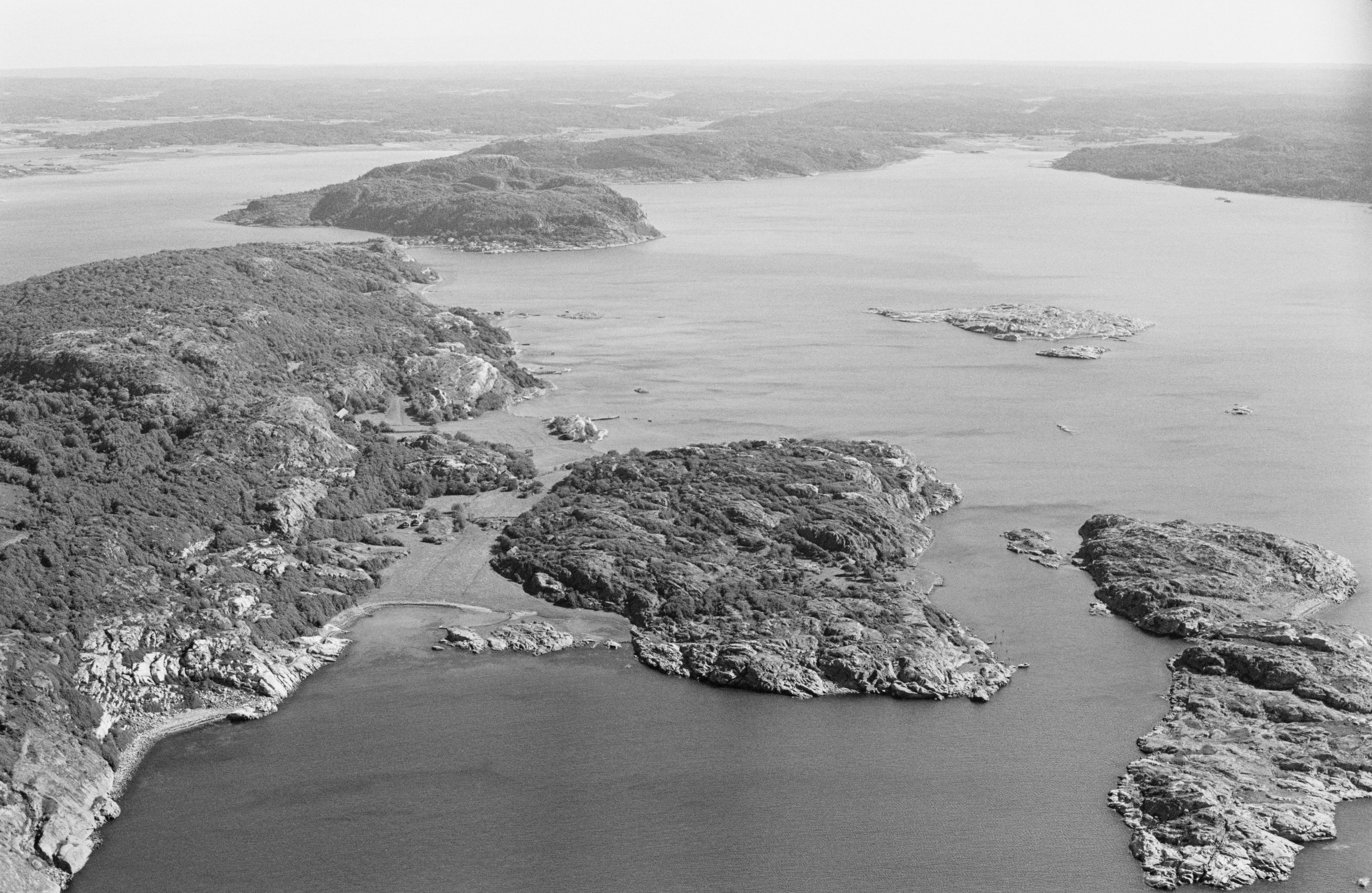 Beskrivning: Södra sidan av ön vid Lammholmen (nere till höger). Vid bildens mitt lämningar efter öns sillsalteri / trankokeri RAÄnr Lycke 72:1. Bilden är tagen mot (väderstreck): Ö