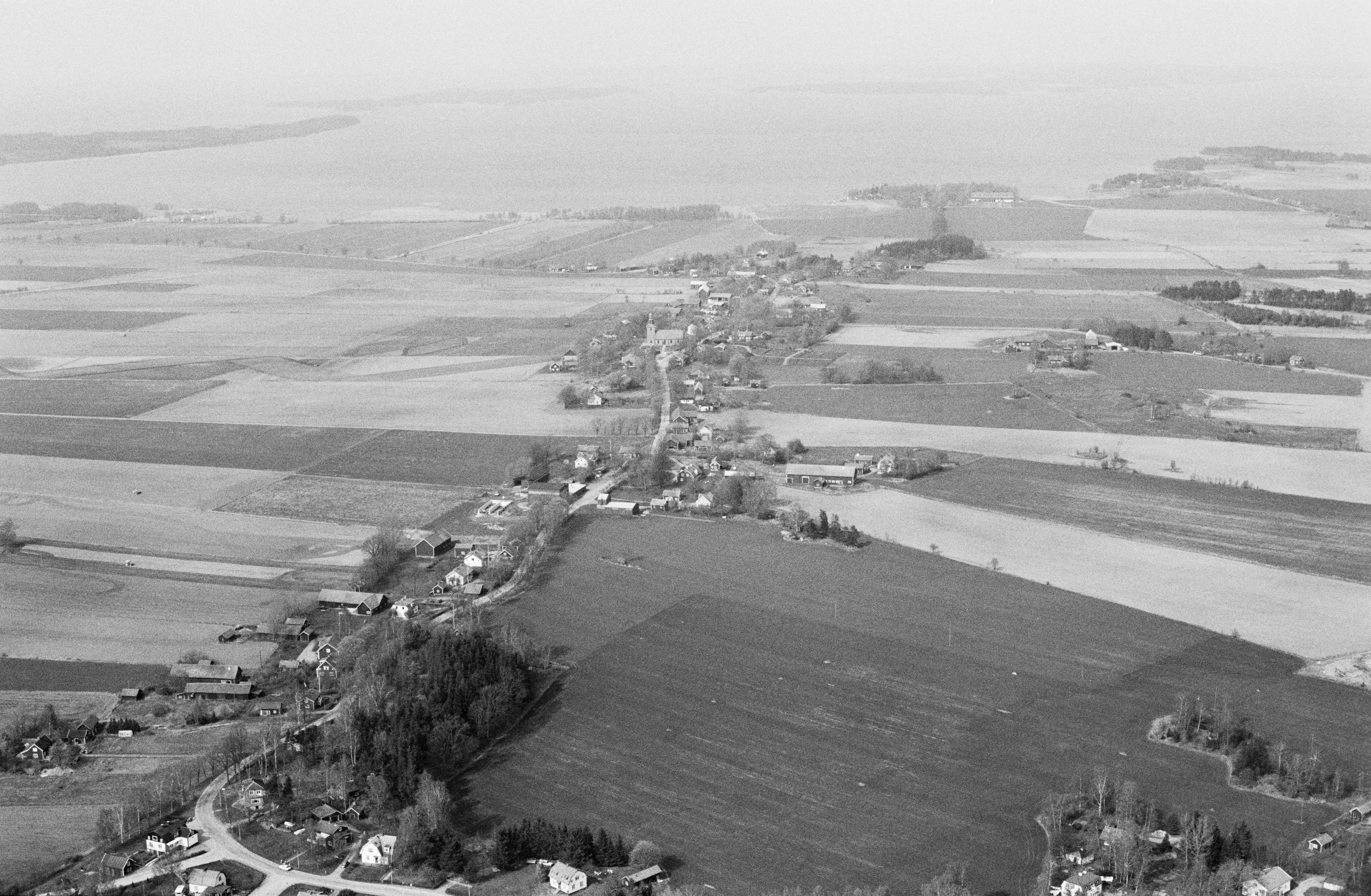 Beskrivning: Björsäters kyrka i bildens övre del. Bilden är tagen mot (väderstreck): NV