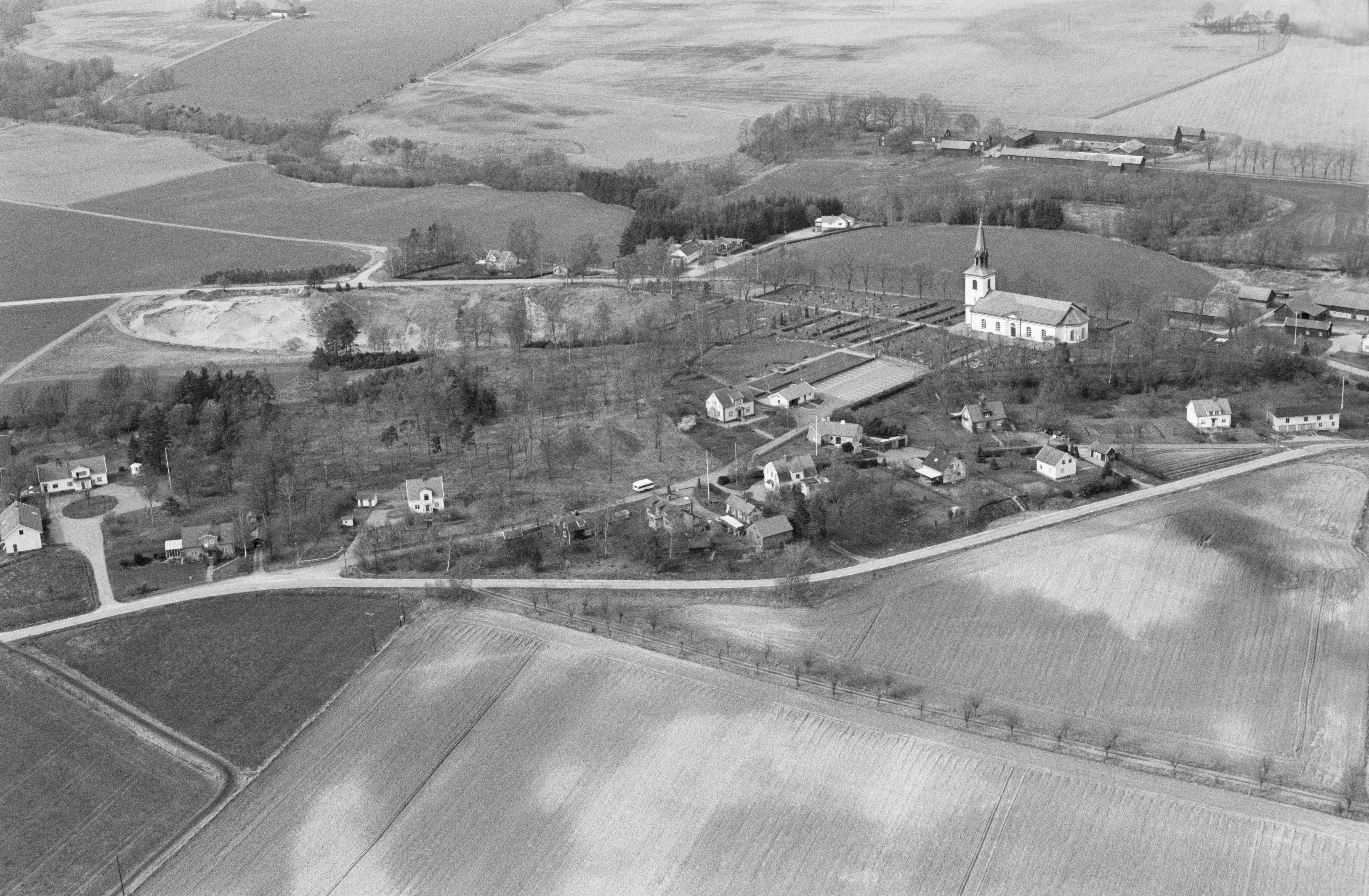 Beskrivning: Anmärkning (övrig): Riksintresse-nr/namn: R38 - Larv. Socken: Larv. Motivering: Centralbygd som bl a genom monumentala fornlämningar och senare administrativa funktioner avspeglar områdets långa kontinuitet som maktcentrum. (Fornlämningsmiljö, Kyrkomiljö, Gårdsmiljö). - Uttryck för riksintresset: Stenåldersboplatser på Larvs hed, flera storhögar, bl a intill och nära Larvs kyrka (Larva Bäsing och Väderhögen), flera gravfält med högar, runda stensättningar, domarringar mm, runsten, fossil åkermark (ryggade åkrar) vid Karlsberg, äldre gårdsbebyggelse, Tingshus vid Onsjö. [Texten uppdaterat av Riksantikvarieämbetet våren 2013.] Beskrivning: Larvs kyrka. Vid kyrkan hög och gravfält "Larva Bäsing" RAÄnr Larv 22:1. Bilden är tagen mot (väderstreck): NNV Fotosyfte: Flygbildsdokumentation