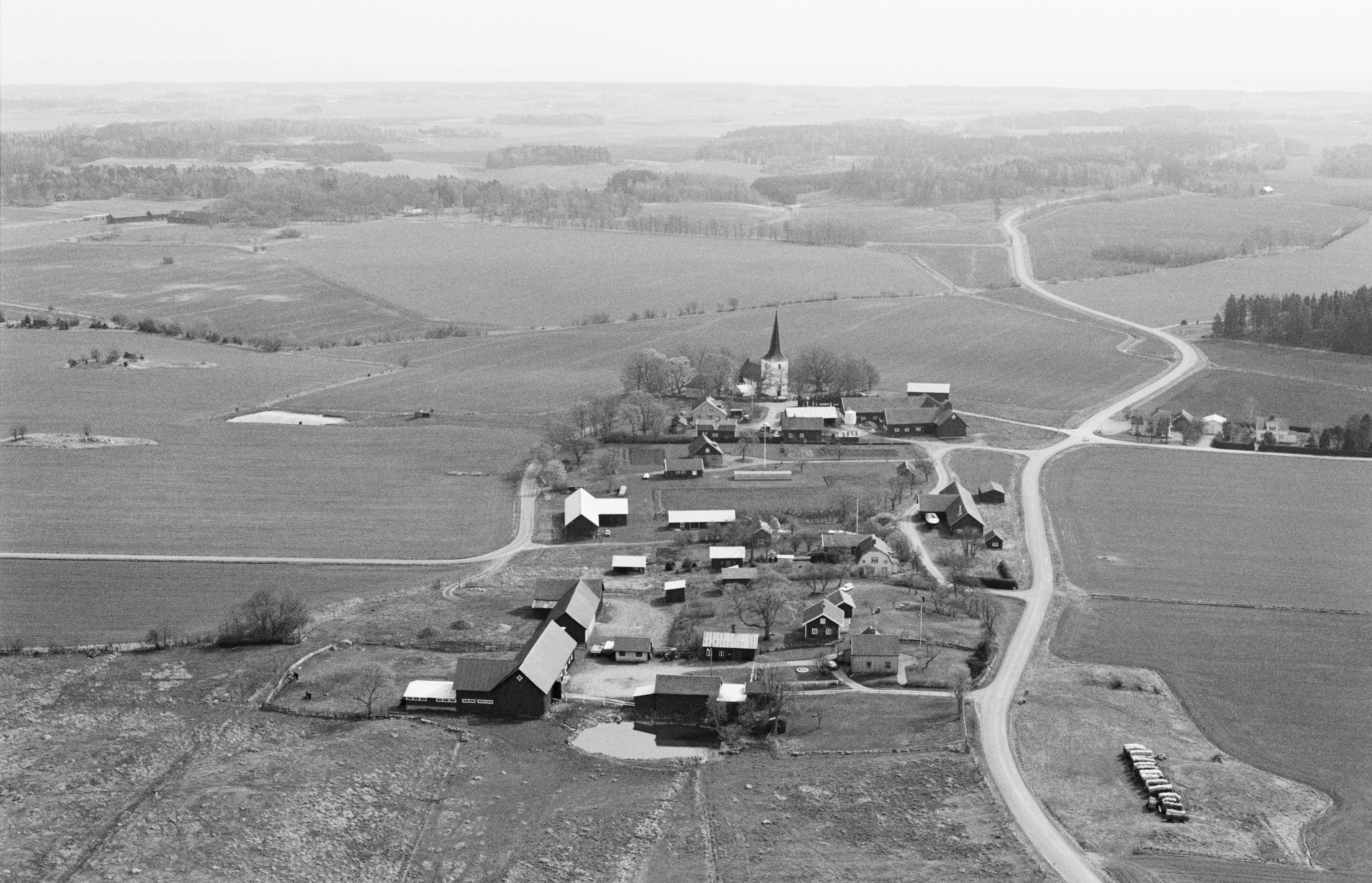 Beskrivning: Rackeby kyrka och kyrkby. Bilden är tagen mot (väderstreck): SO