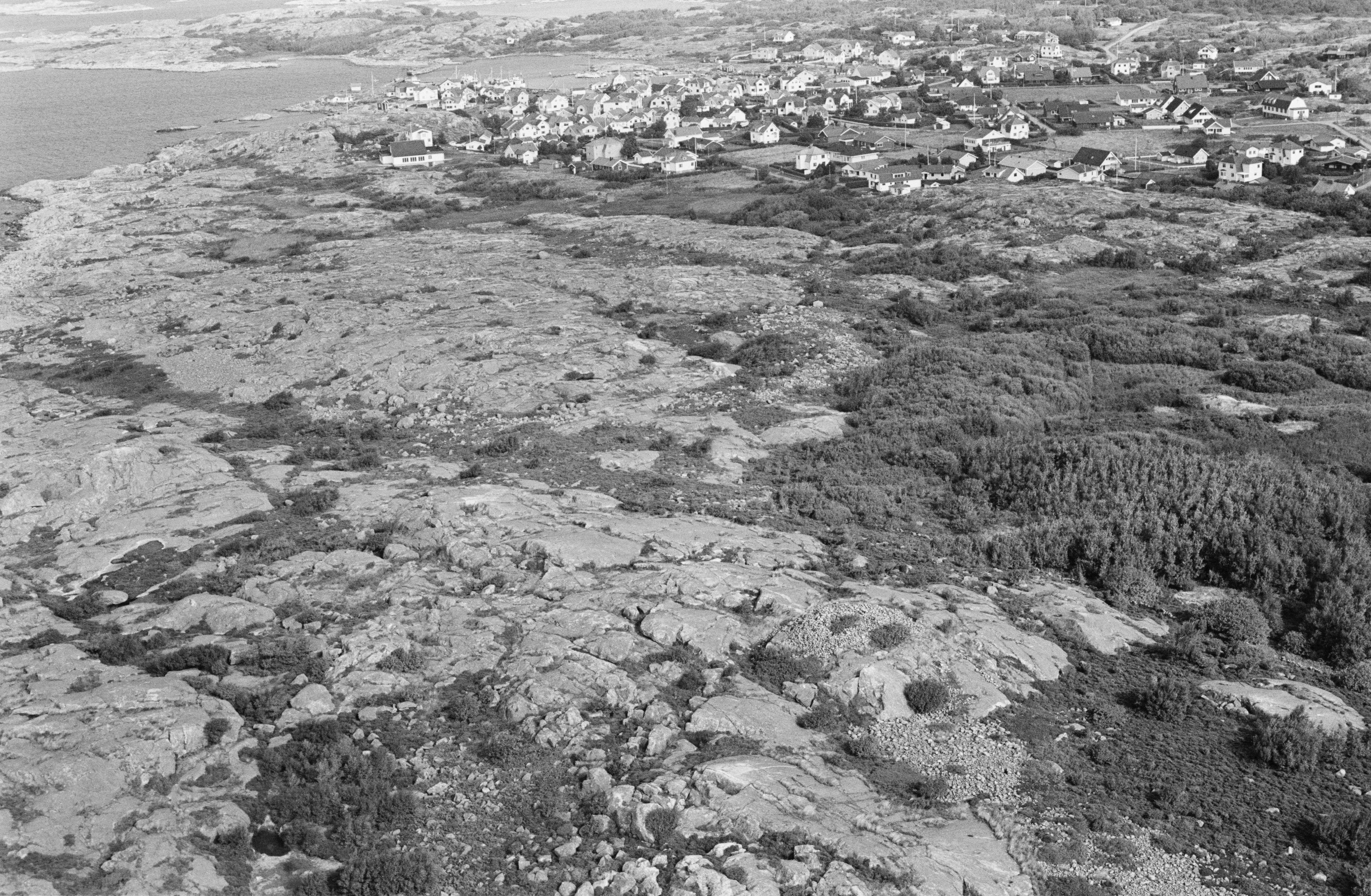 Beskrivning: Södra delen av Vrångö. Röse RAÄnr Styrsö 54:1 vid bildens mitt. Vrångö tätort i bildens övre del. Bilden är tagen mot (väderstreck): NNO