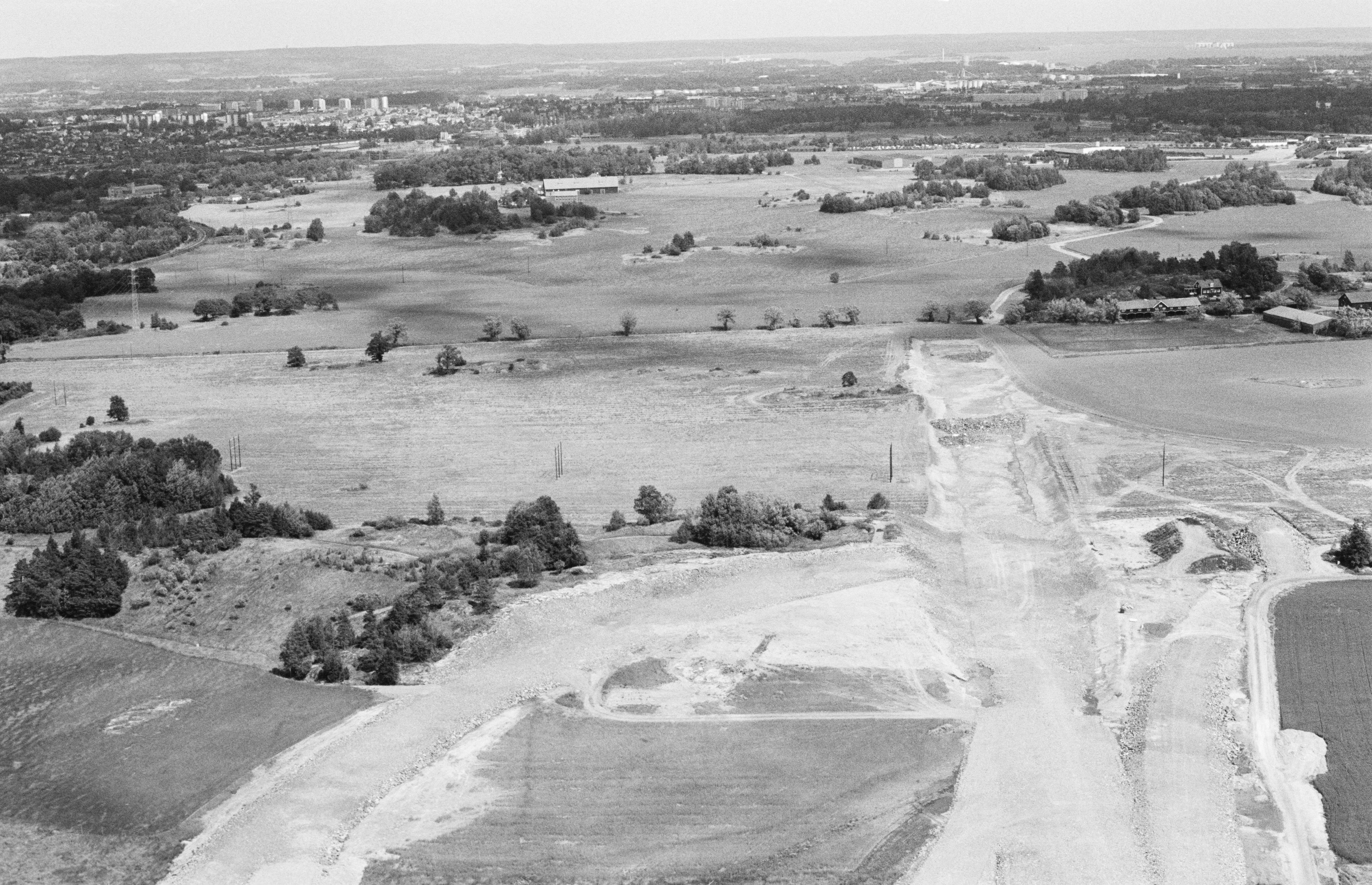 Beskrivning: (Tid. Borgs socken). Bygge av väg E4 genom hällristningsområde RAÄnr Borg 23:1, 24:1, 25:1, 26:1-2, 27:1 m.fl. Borgs säteri och Skälvs gård. I bildens övre del Norrköpings stad. Bilden är tagen mot (väderstreck): NO