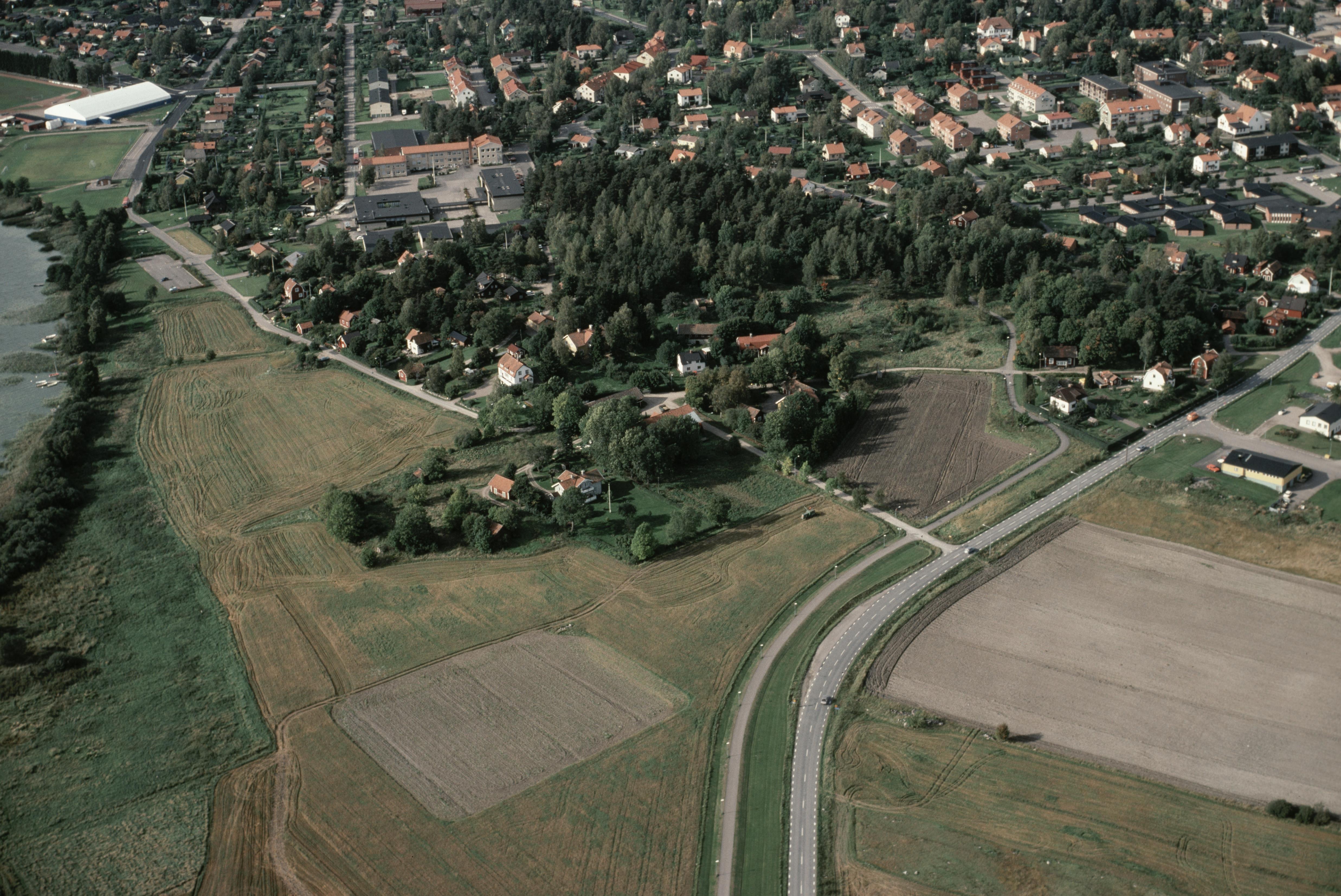 Beskrivning: Rimbo tätort. Gravfält RAÄnr Rimbo 82:1 och stensättning 84:1 vid bildens mitt. Bilden är tagen mot (väderstreck): NV