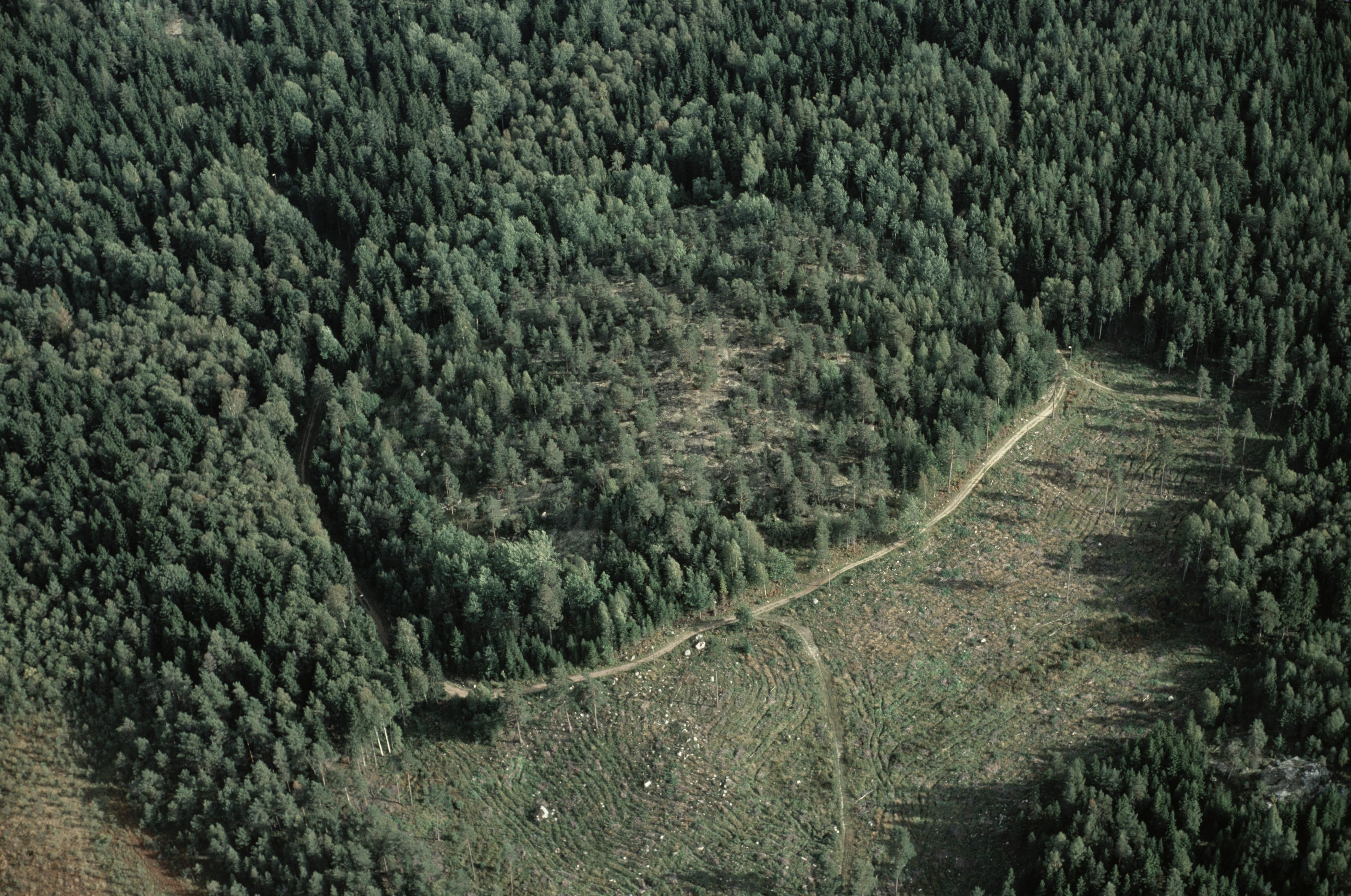 Beskrivning: Söder om Bolsmossen. Vid bildens mitt stensättning Tistelkullen RAÄnr Rimbo 100:1. Bilden är tagen mot (väderstreck): OSO