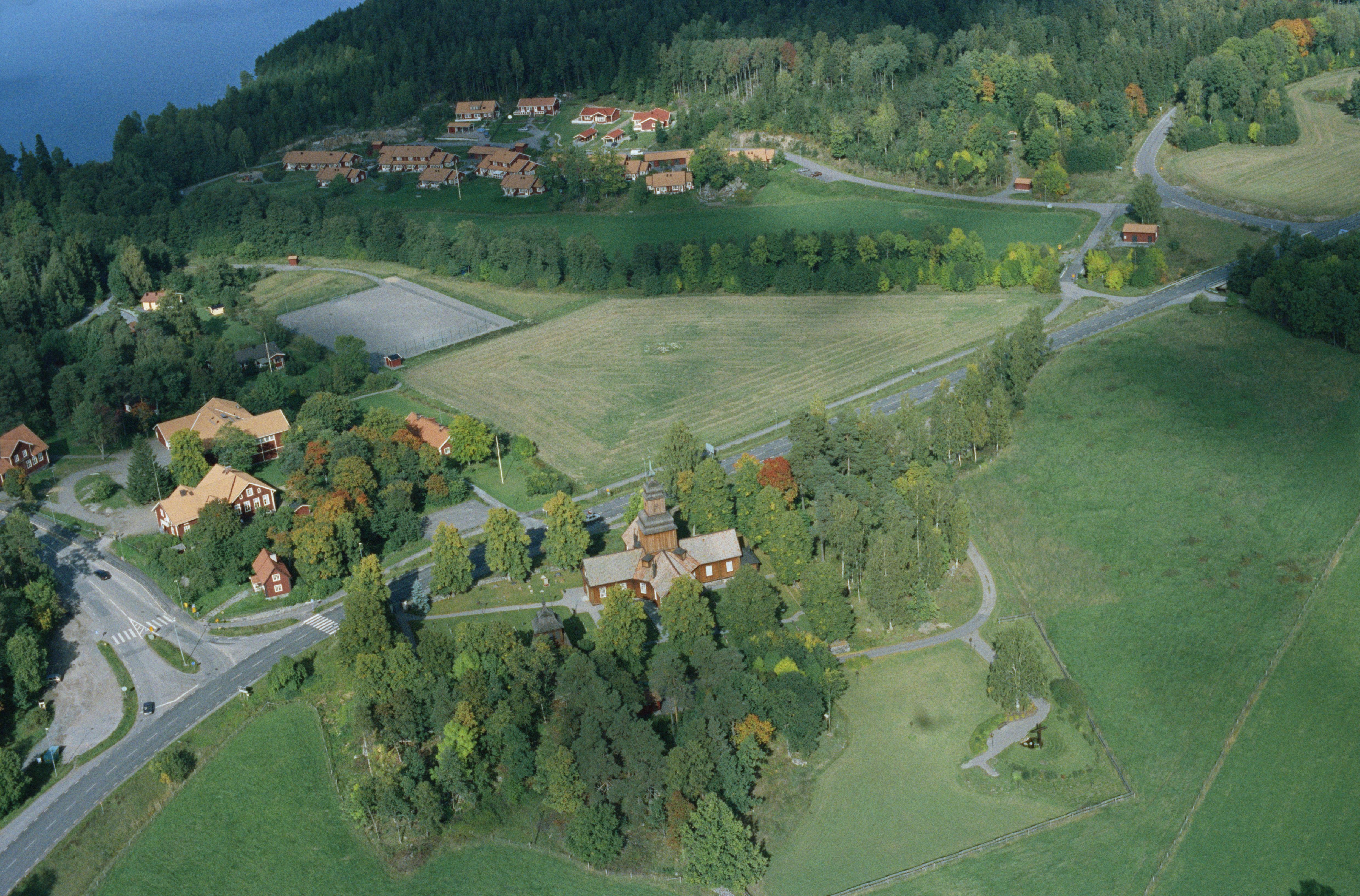 Beskrivning: Roslags-Kulla kyrka och kyrkby. Bilden är tagen mot (väderstreck): NO