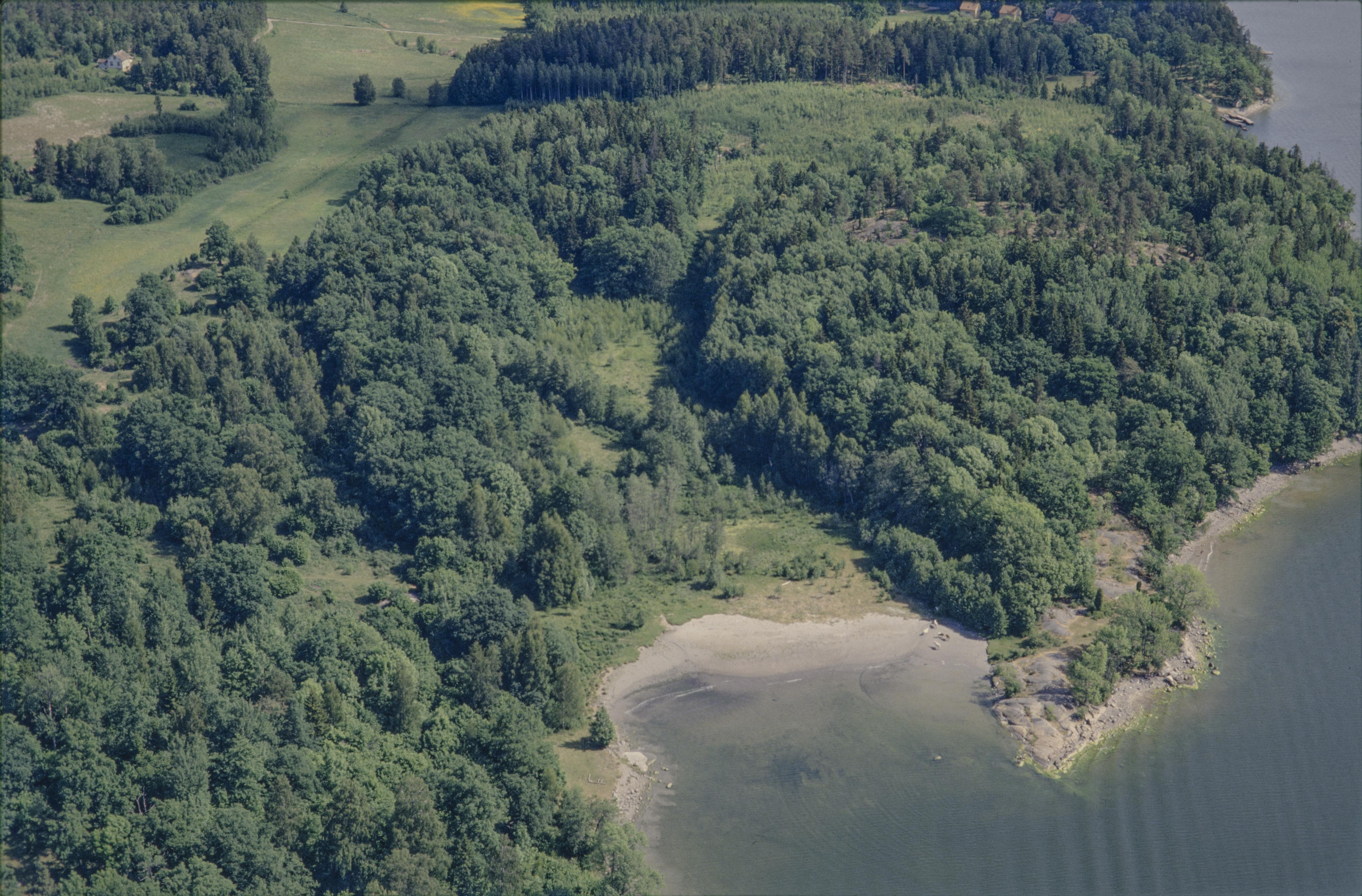Beskrivning: Vid bildens mitt vårdkase Kasen RAÄnr Roslags-Kulla 42:1 på Staboudd / Stavberget. Bilden är tagen mot (väderstreck): NO