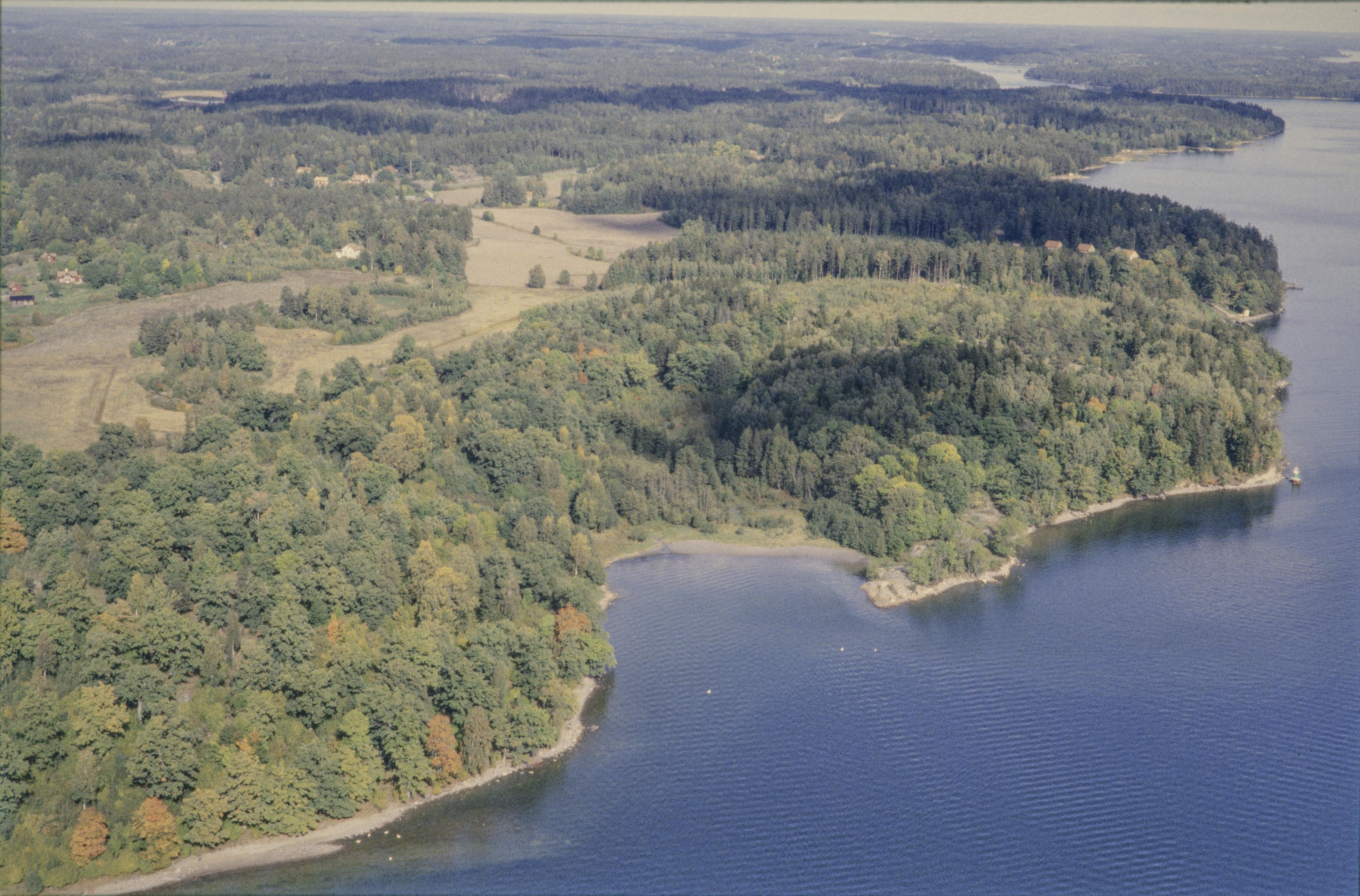 Beskrivning: Vid bildens mitt vårdkase Kasen RAÄnr Roslags-Kulla 42:1 på Staboudd / Stavberget. Bilden är tagen mot (väderstreck): NO