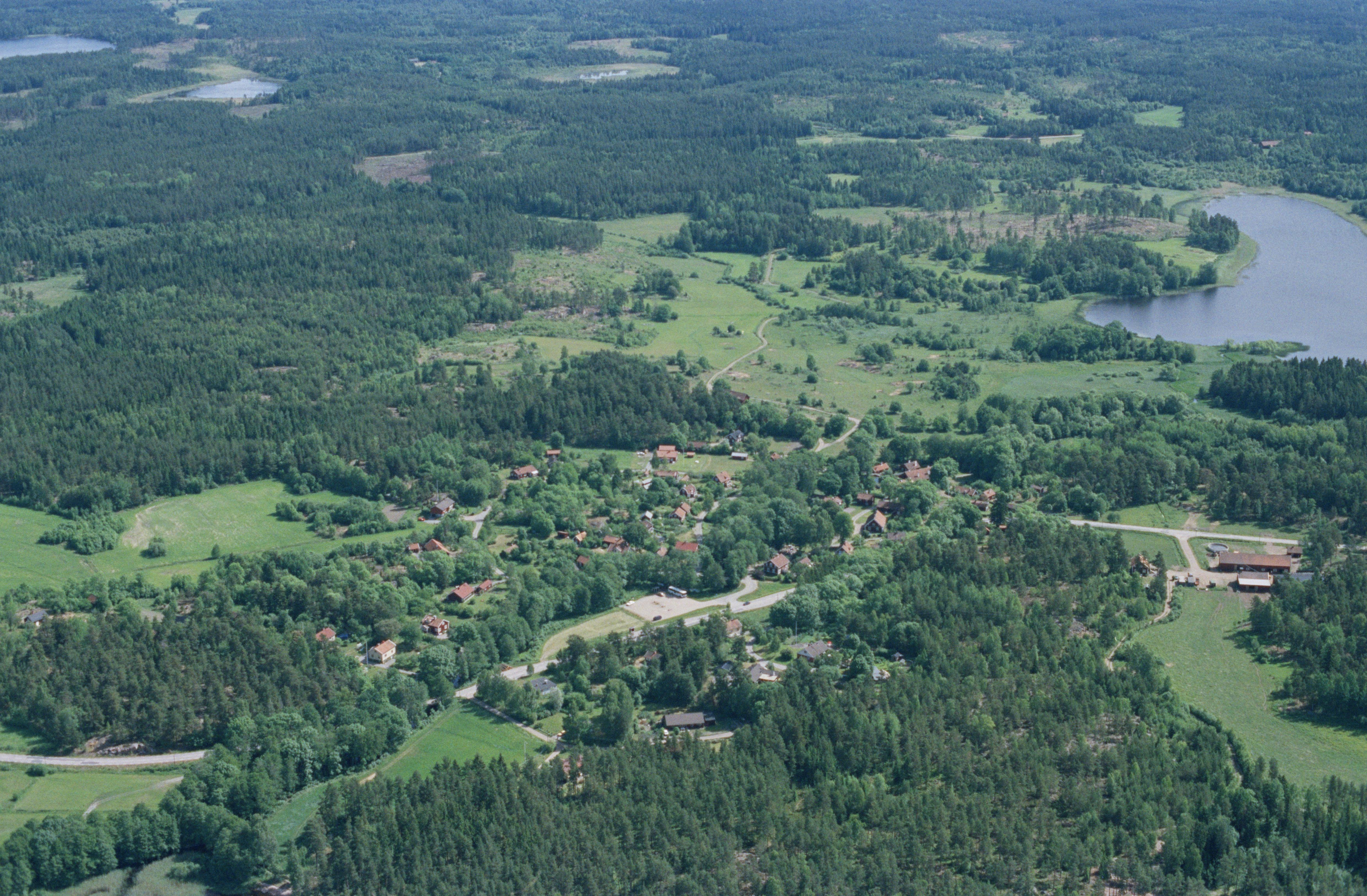 Beskrivning: Vira bruk RAÄnr Roslags-Kulla 7:1 vid Viraån. Nere till vänster sjön Viren, uppe till höger Losjön. Bilden är tagen mot (väderstreck): Ö