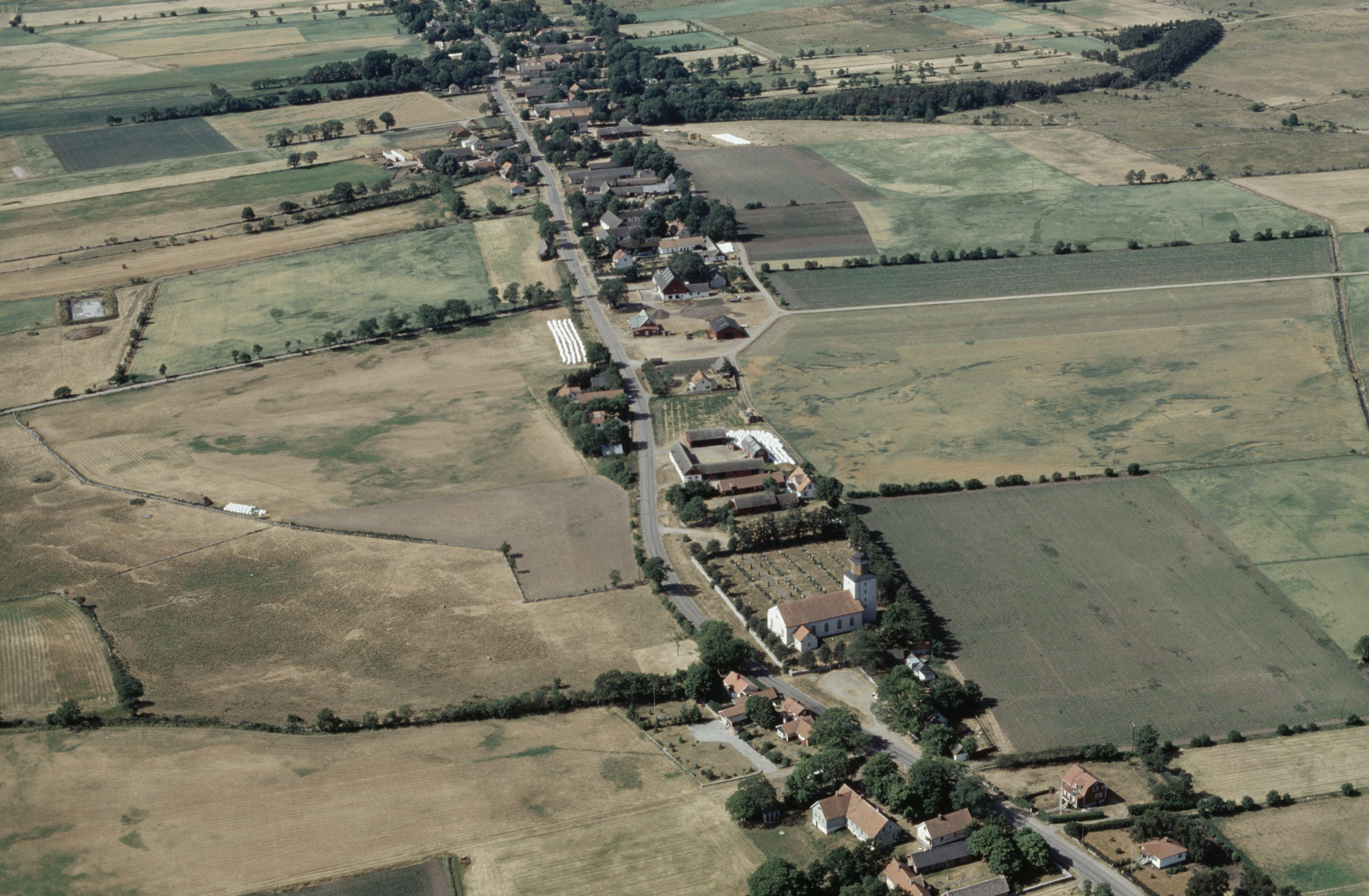 Beskrivning: Alvaret. Stenåsa kyrka och kyrkby. Bilden är tagen mot (väderstreck): S