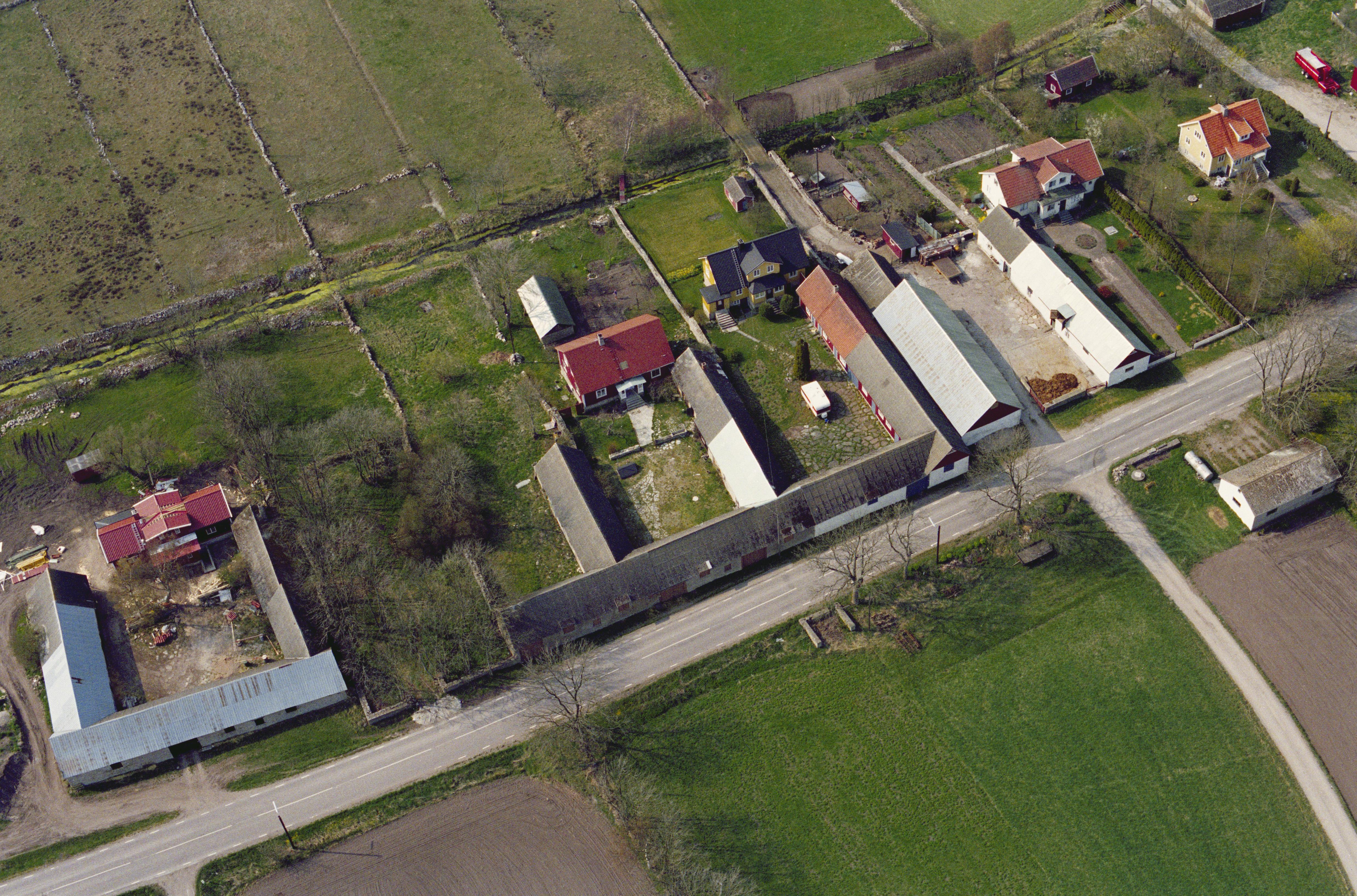 Beskrivning: Södra Kvinneby. I bildens nedre kant fyndplats (ask och fingerring av brons) RAÄnr Stenåsa 102:1. Bilden är tagen mot (väderstreck): NNV