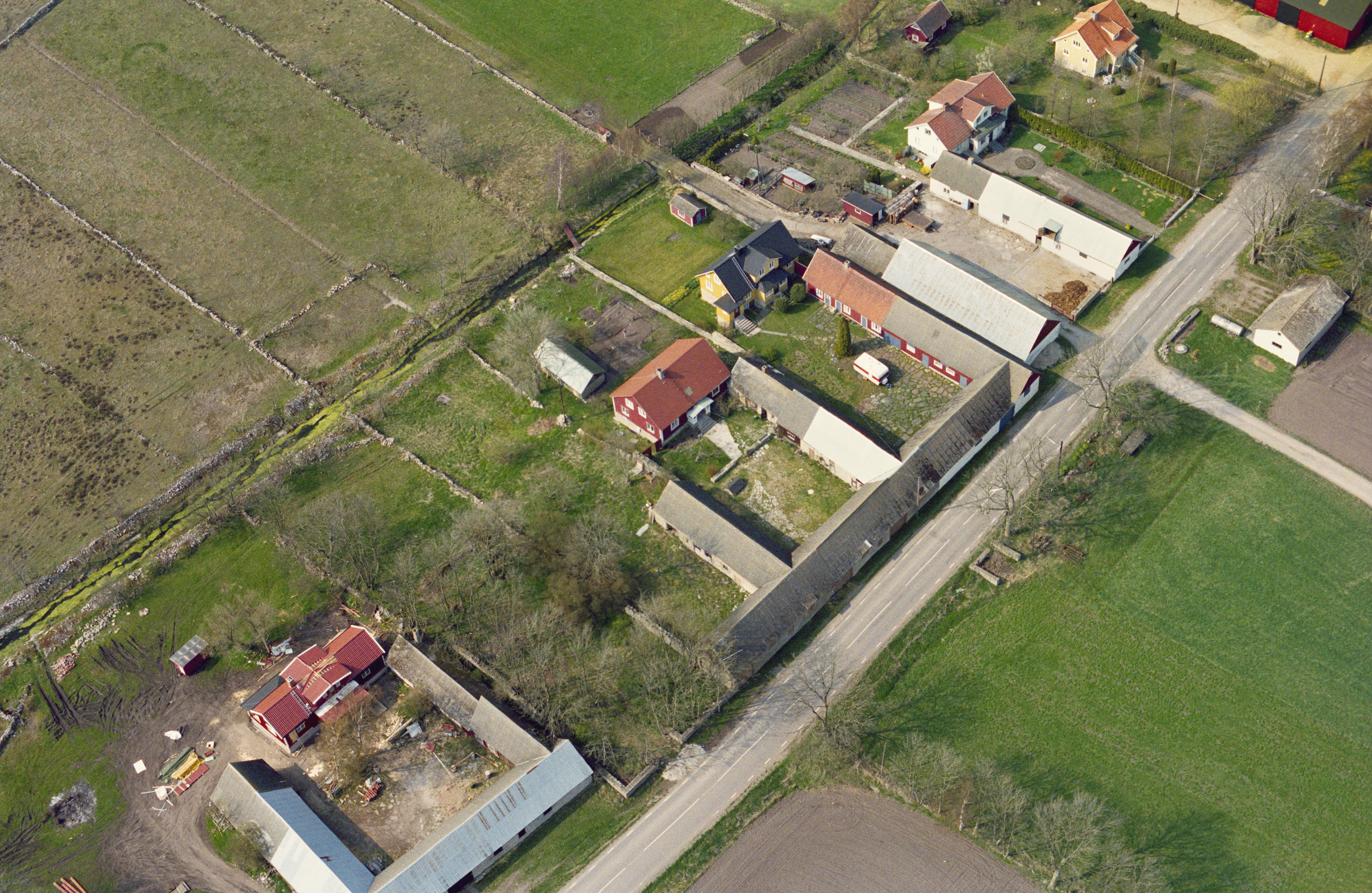Beskrivning: Södra Kvinneby. Till höger i bildens nedre kant fyndplats (ask och fingerring av brons) RAÄnr Stenåsa 102:1. Bilden är tagen mot (väderstreck): N