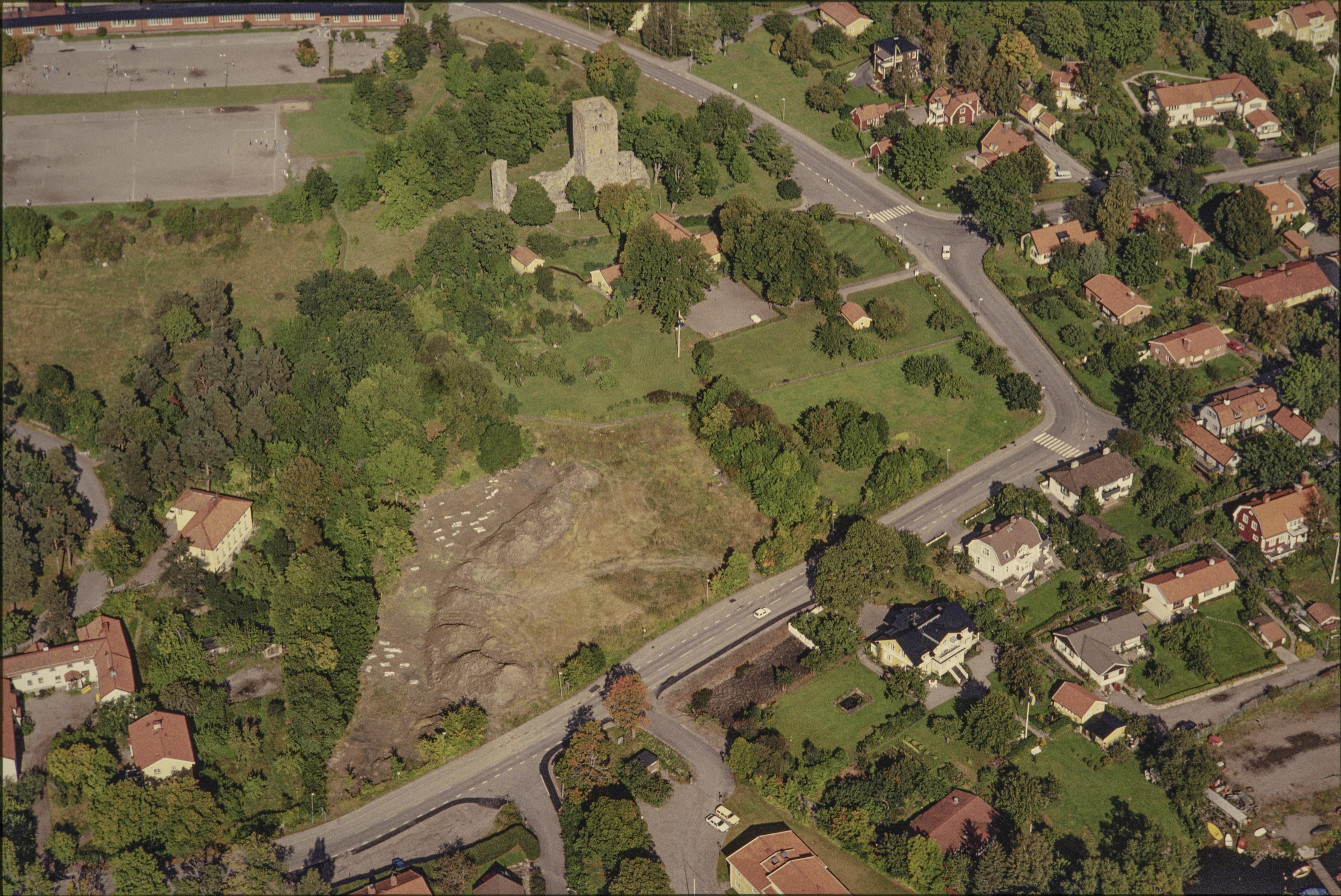 Beskrivning: Sigtuna stad vid Sigtunafjärden i Mälaren. Stadslager RAÄnr Sigtuna 195:1 m.fl. Vid bildens mitt gravfält RAÄnr Sigtuna 3:1. I bildens övre del Sankt Pers kyrkoruin RAÄnr Sigtuna 22:1. Bilden är tagen mot (väderstreck): NNO