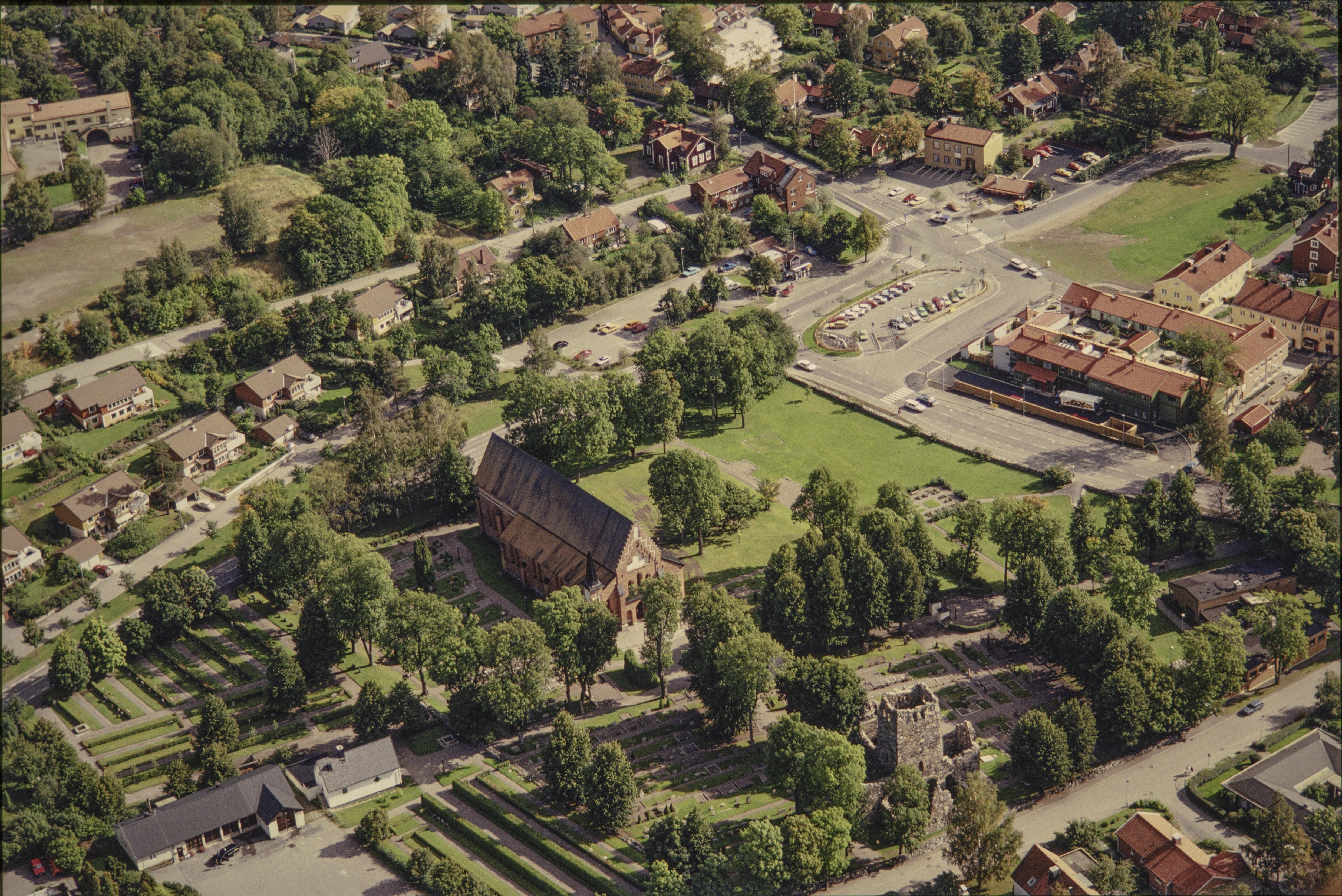 Beskrivning: Sigtuna stad vid Sigtunafjärden i Mälaren. Stadslager RAÄnr Sigtuna 195:1 m.fl. Under bildens mitt Sankt Olofs kyrkoruin RAÄnr Sigtuna 22:1. Vid bildens mitt Mariakyrkan. Bilden är tagen mot (väderstreck): SO
