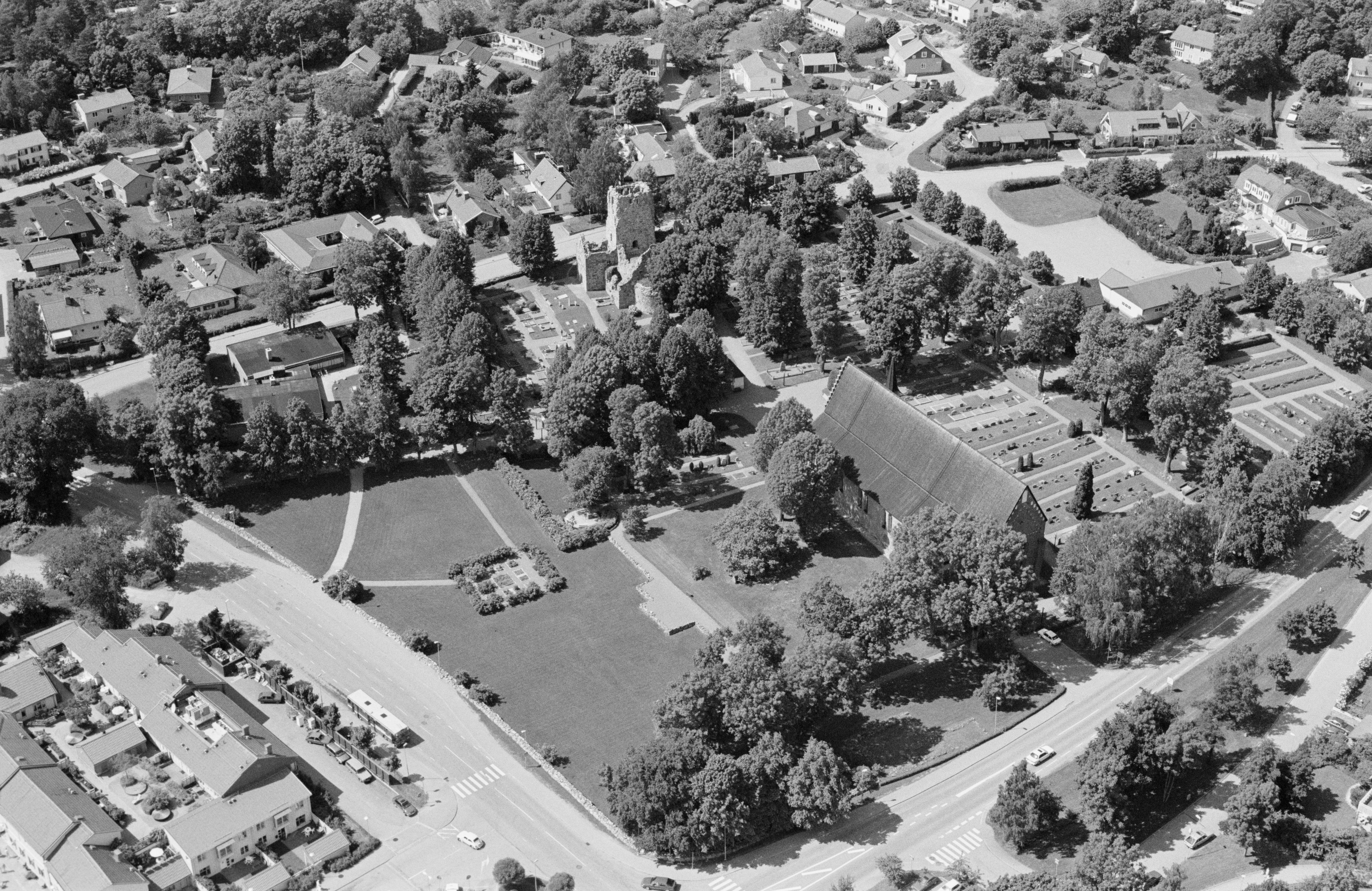 Beskrivning: Sigtuna stad vid Sigtunafjärden i Mälaren. Stadslager RAÄnr Sigtuna 195:1 m.fl. Vid bildens mitt Sankt Olofs kyrkoruin RAÄnr Sigtuna 28:1 och Mariakyrkan. Bilden är tagen mot (väderstreck): NV