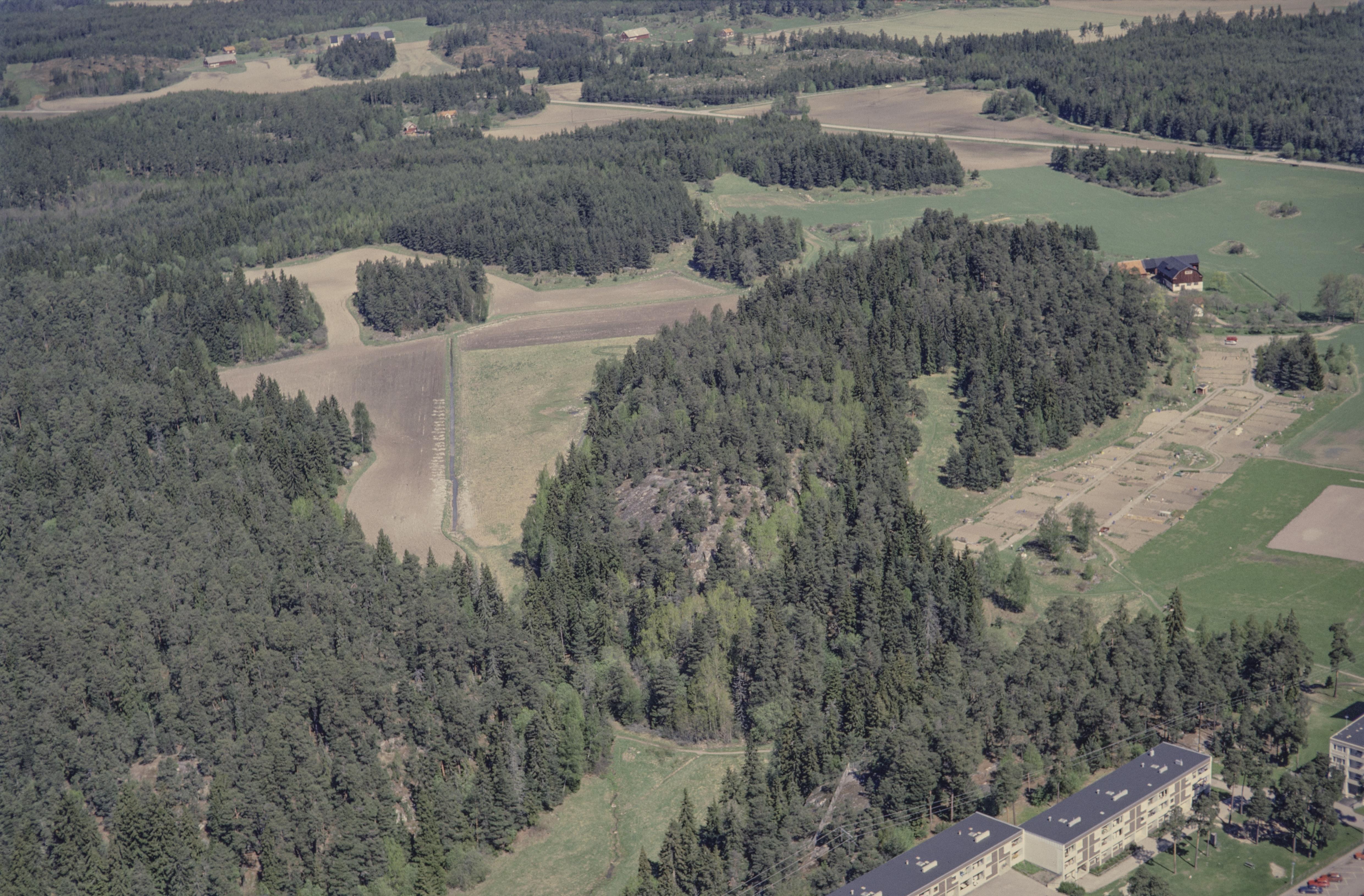 Beskrivning: I norra delen av Sigtuna stad vid Sigtunafjärden i Mälaren. I bildens nedre del fornborg Trollberget RAÄnr Sigtuna 80:1. Bilden är tagen mot (väderstreck): NNO