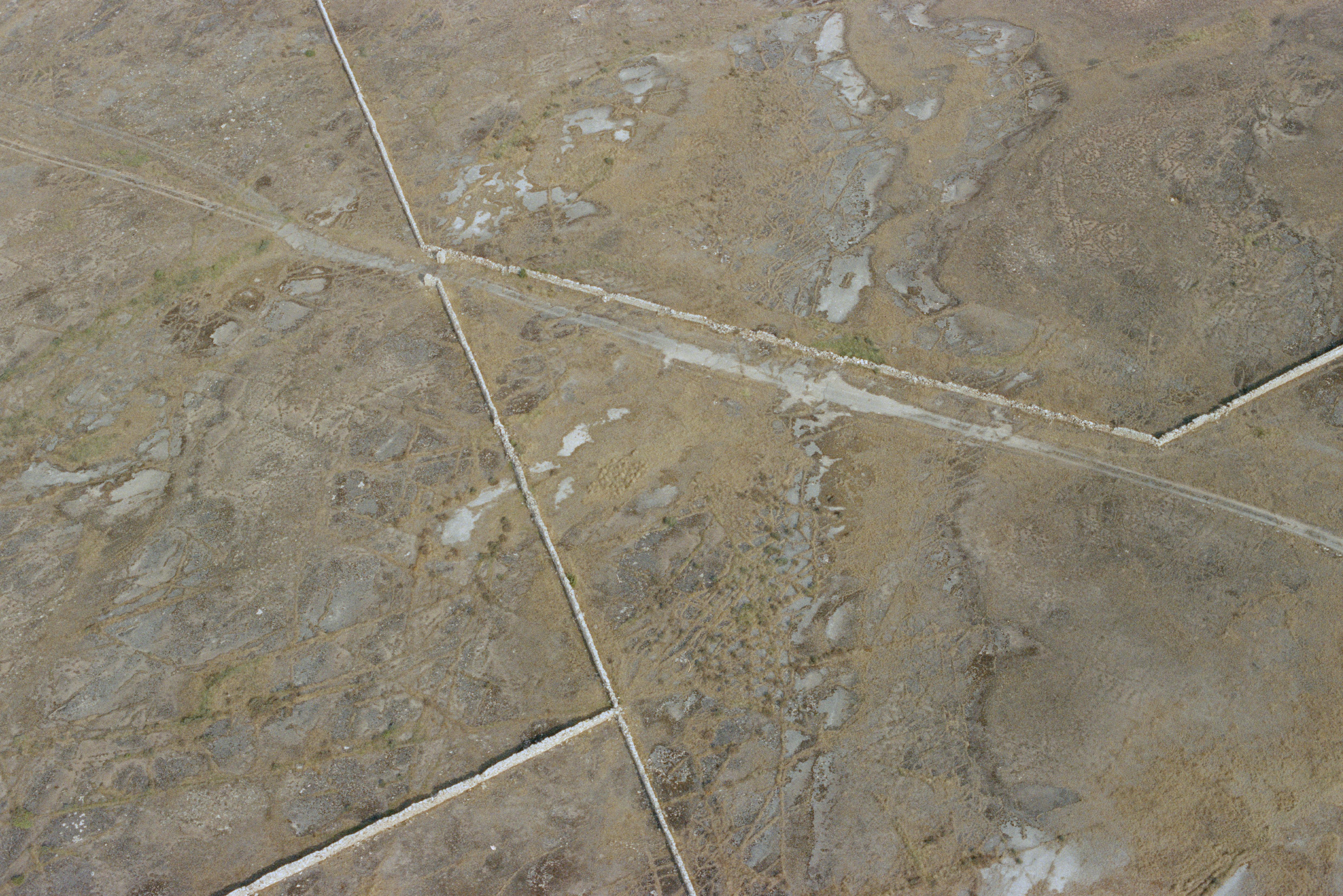 Beskrivning: Stengärdsgårdar i södra delen av Alvaret, öster om Ventlinge by. I samma område (utanför bild) är stensättning RAÄnr Ventlinge 52:1 och 82:1. Bilden är tagen mot (väderstreck): NV