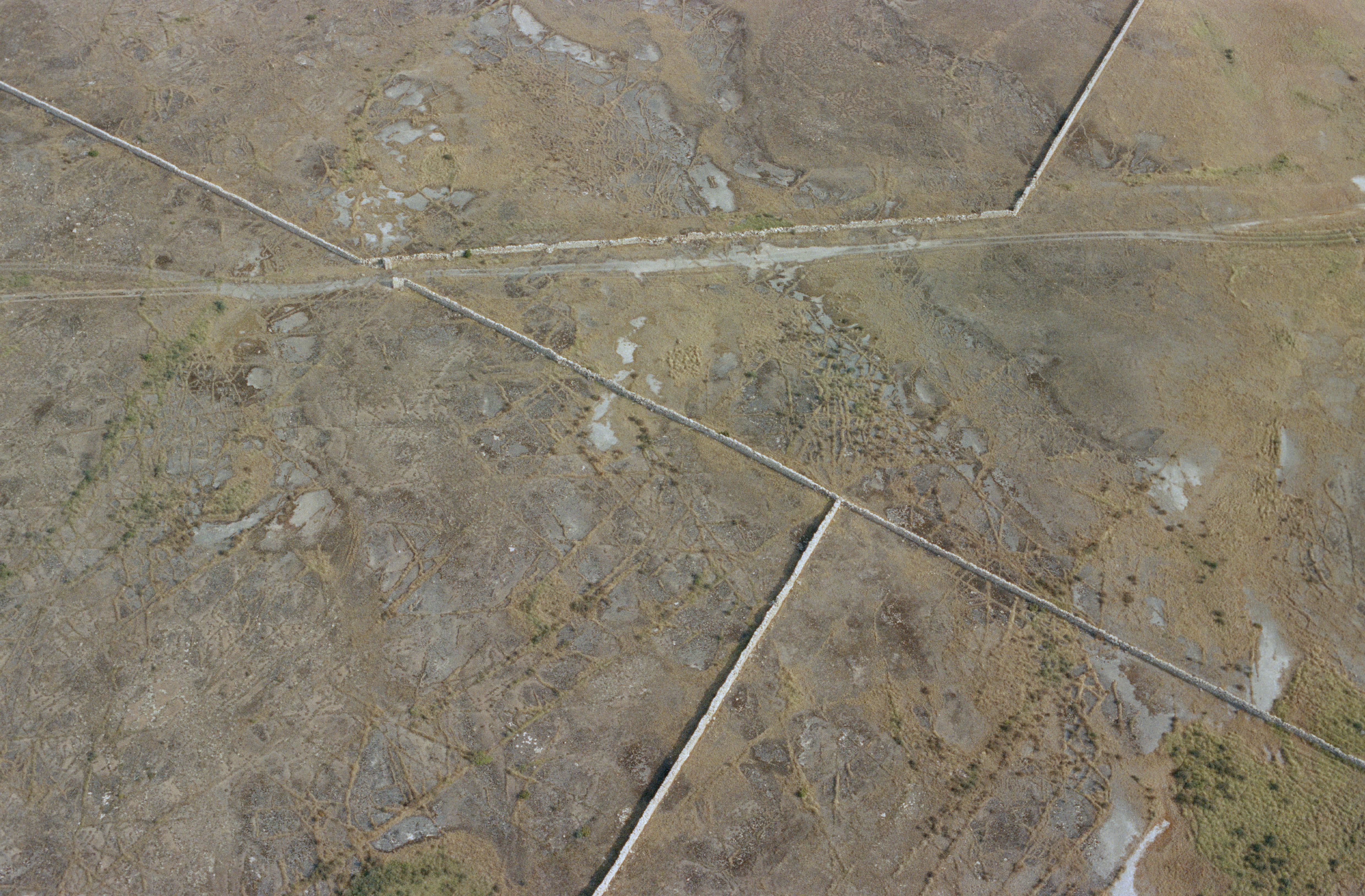 Beskrivning: Stengärdsgårdar i södra delen av Alvaret, öster om Ventlinge by. I samma område (utanför bild) är stensättning RAÄnr Ventlinge 52:1 och 82:1. Bilden är tagen mot (väderstreck): N